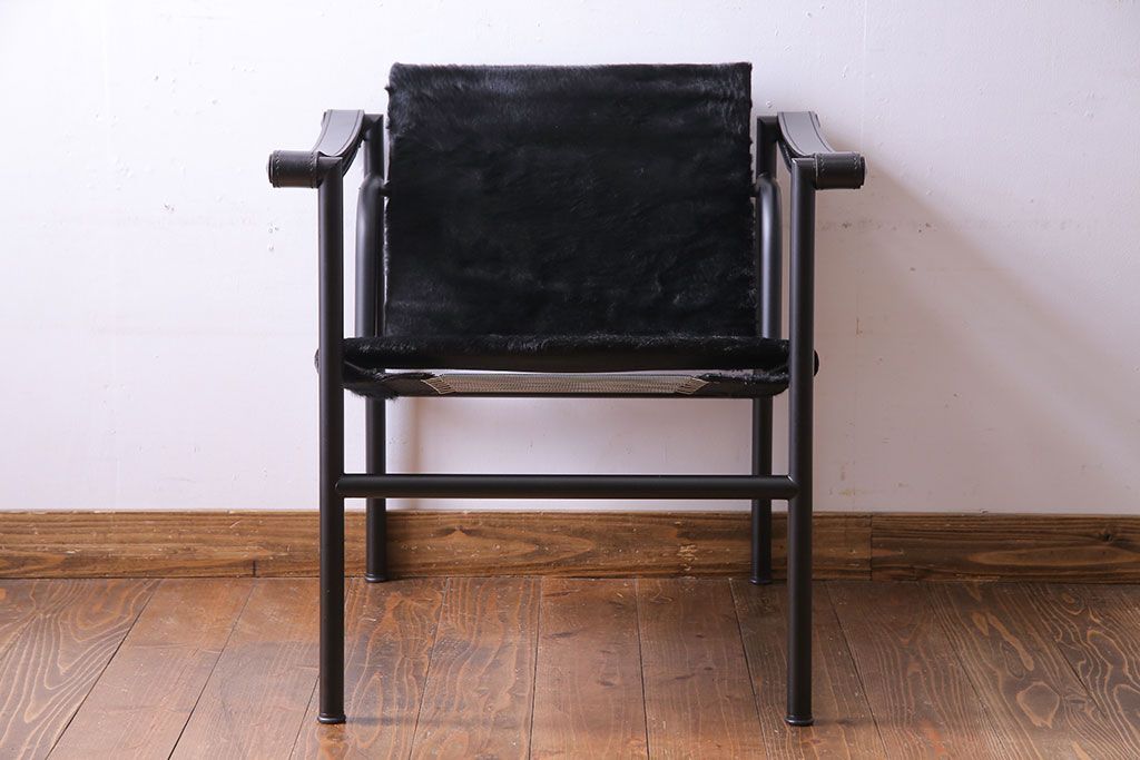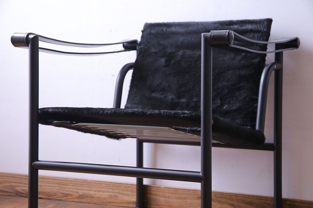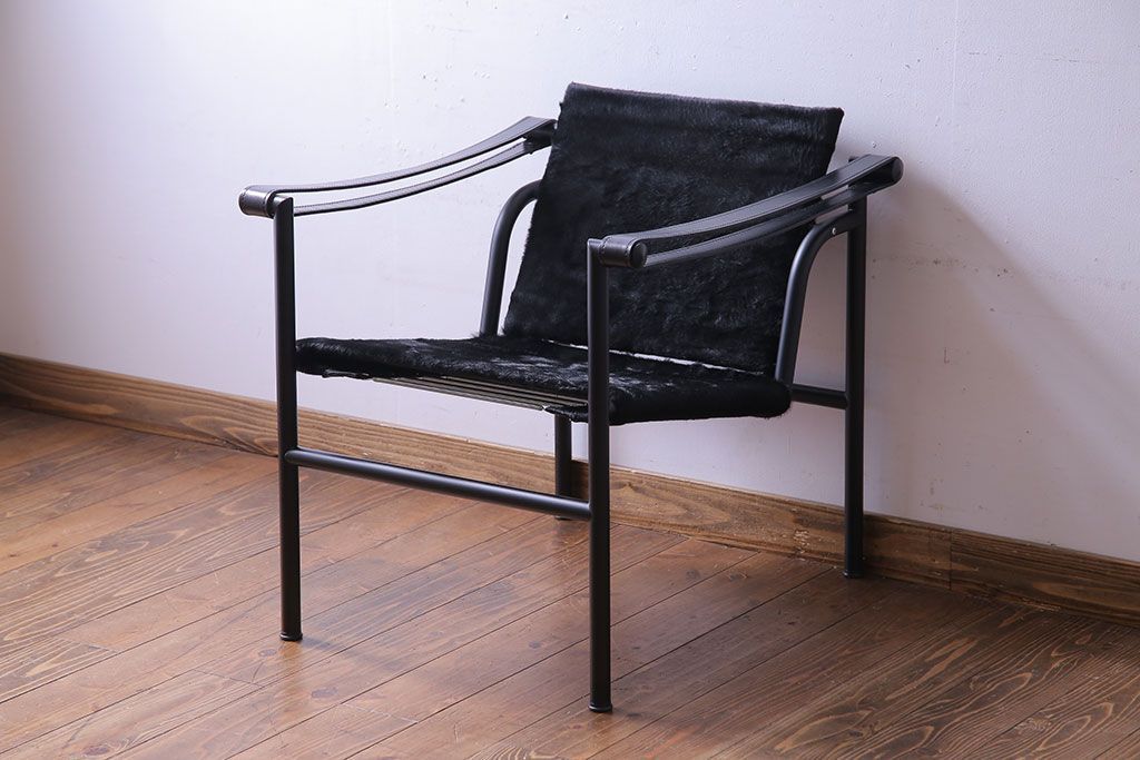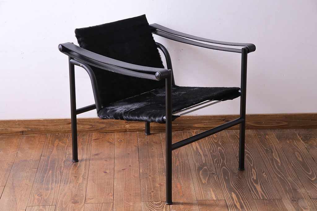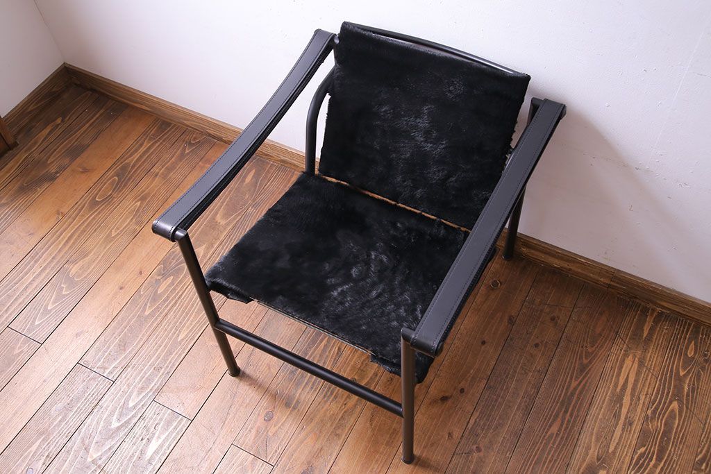 中古 Cassina(カッシーナ) ル・コルビュジエ 黒・仔牛毛皮 LC1スリングチェア(アームチェア、椅子)(定価約42万円)