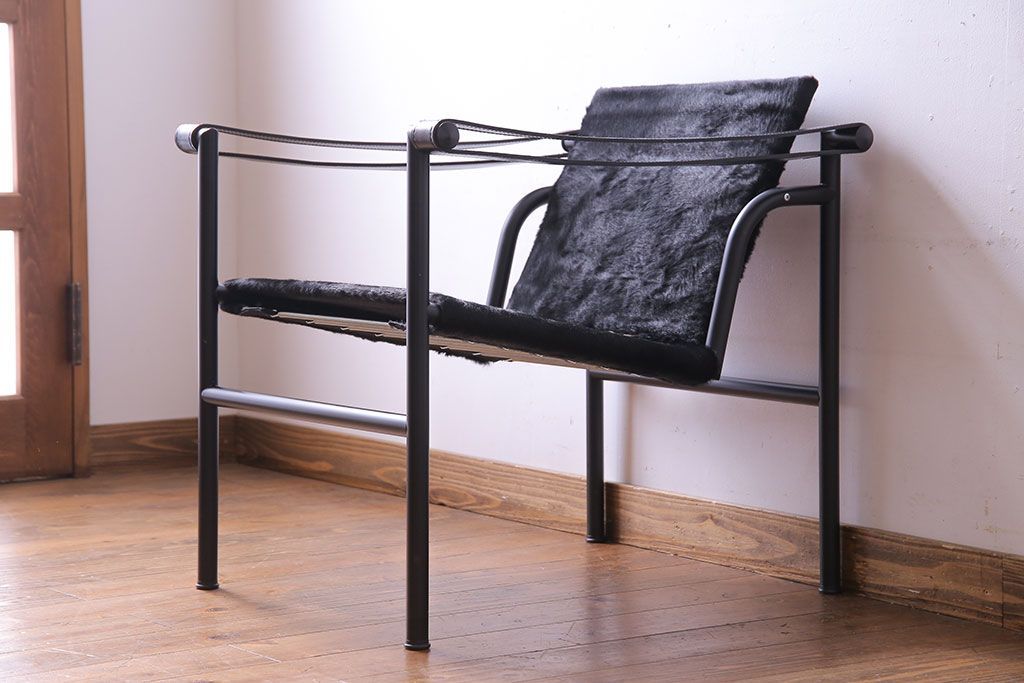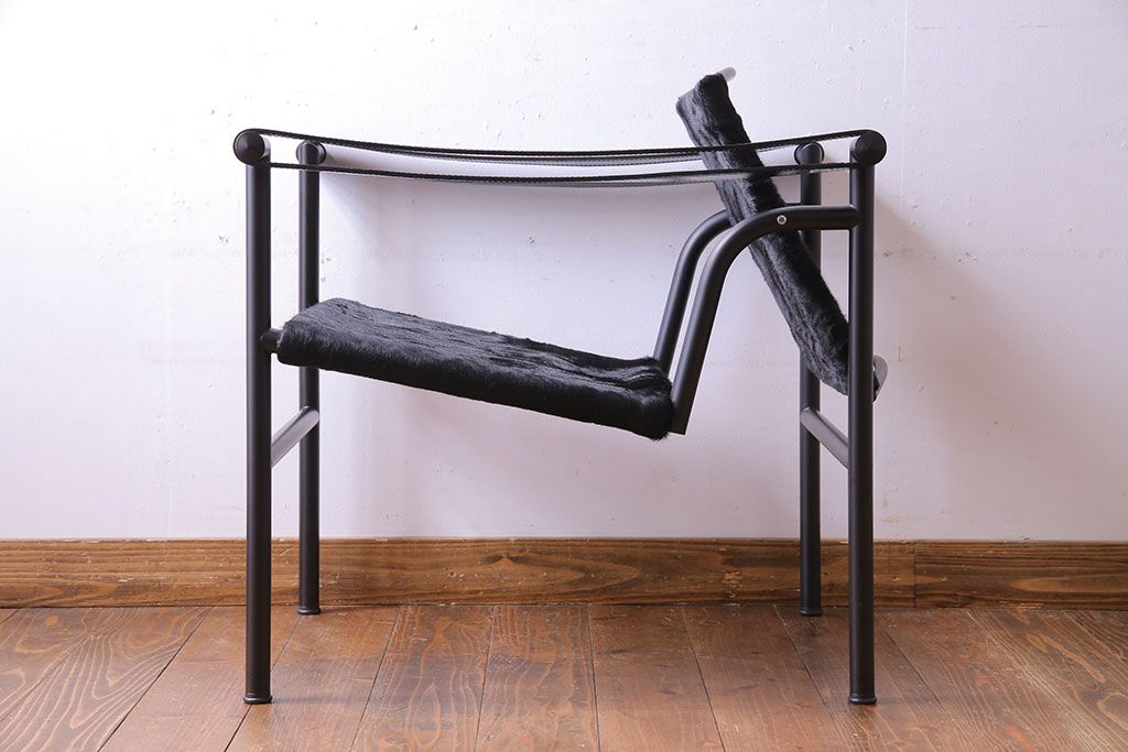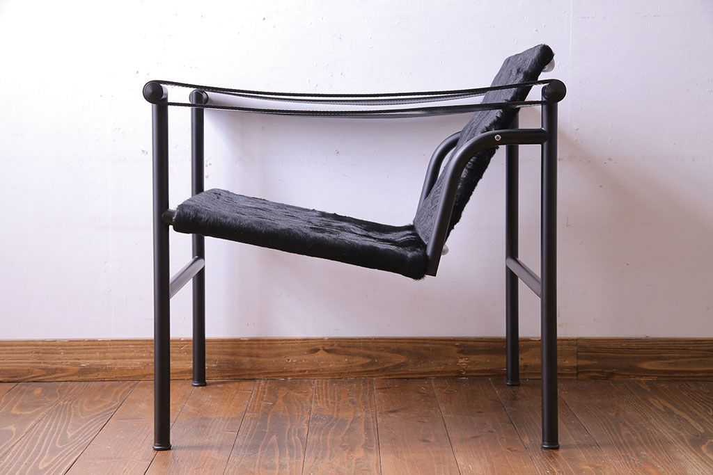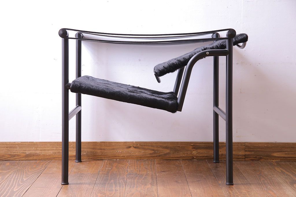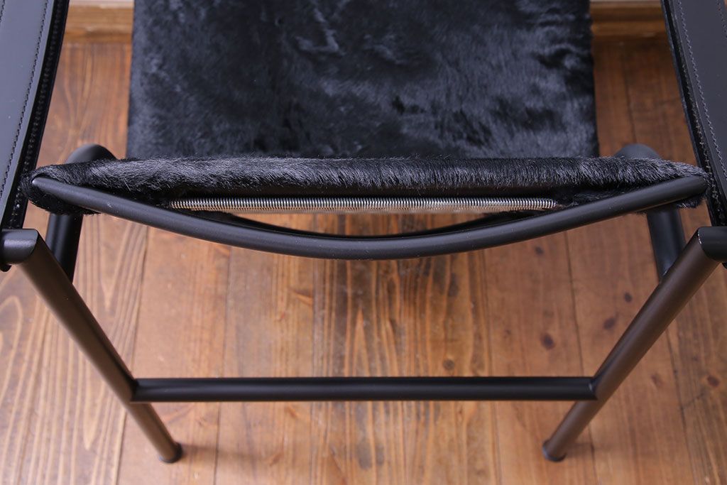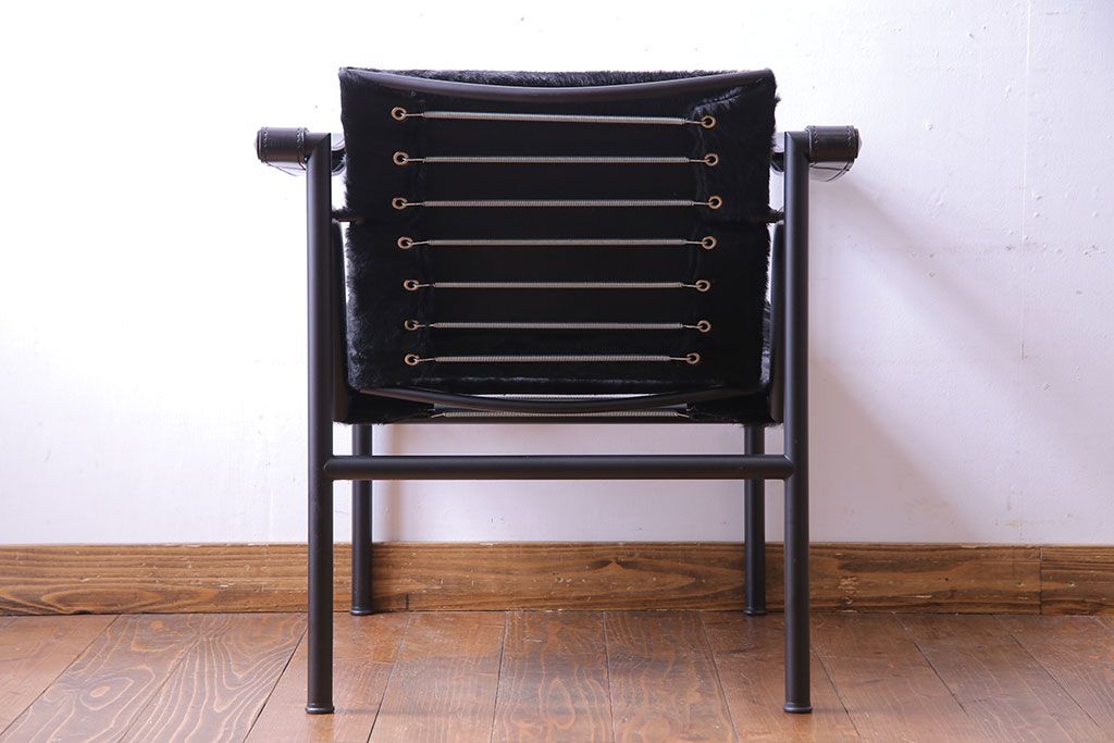 中古 Cassina(カッシーナ) ル・コルビュジエ 黒・仔牛毛皮 LC1スリングチェア(アームチェア、椅子)(定価約42万円)