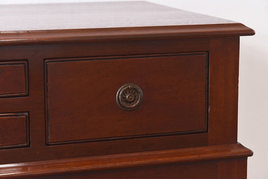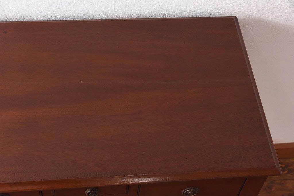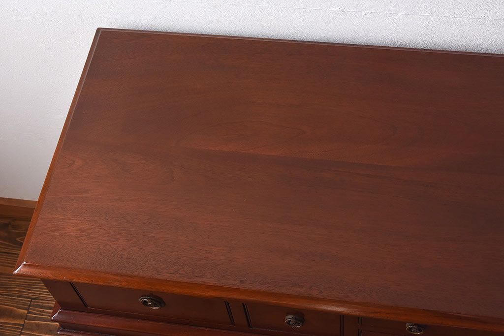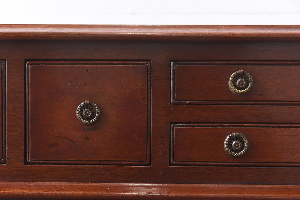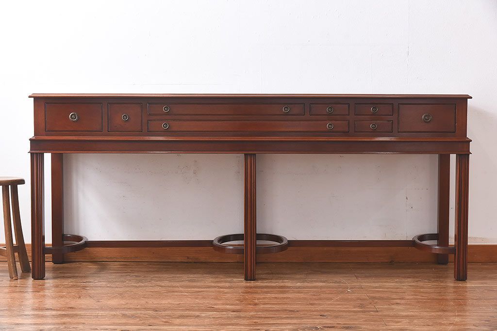 イギリスアンティーク マホガニー 細かな引き出しが魅力の薄型コンソールテーブル(サイドテーブル)です。