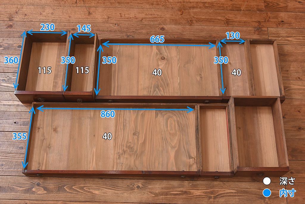 ■引き出しの内寸(中央:小) 各 深さ40mm/幅145mm/奥行350mm
