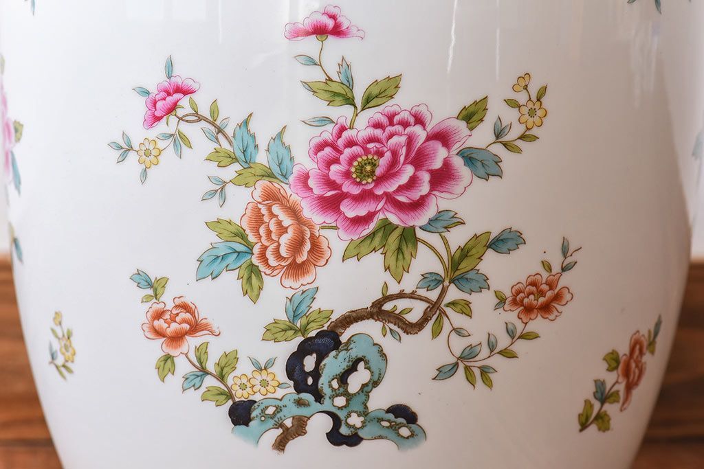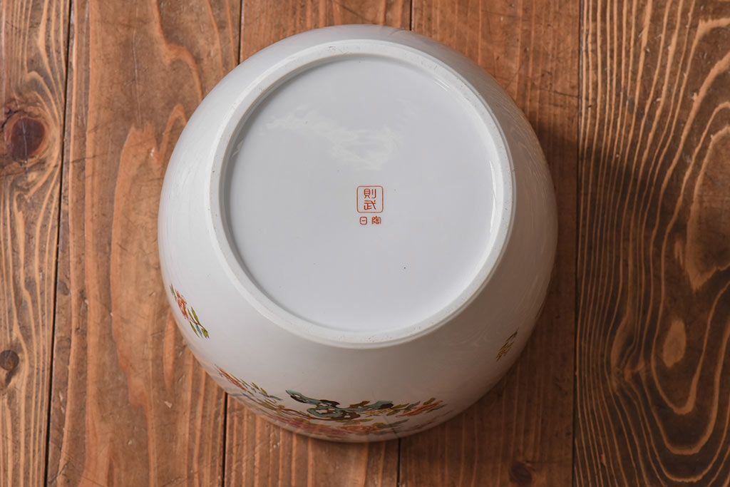 アンティーク雑貨 ノリタケ(日陶・則武) 華やかな色遣いの壱型火鉢(手あぶり、鉢カバー)