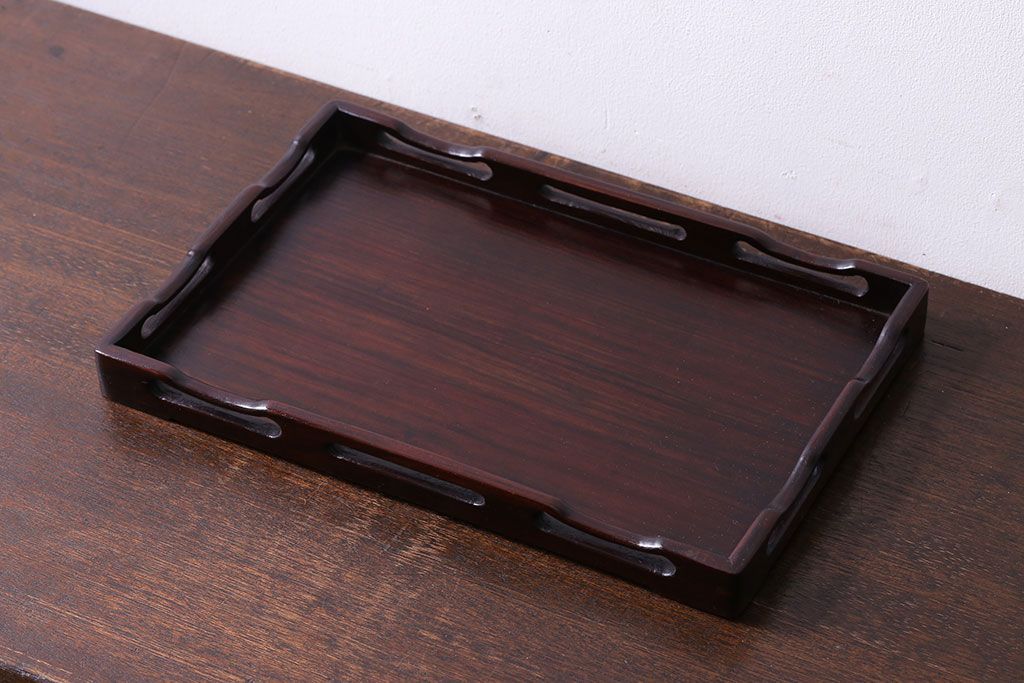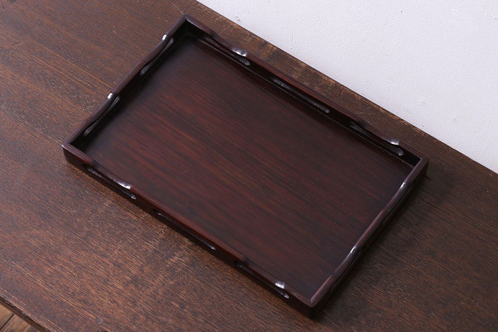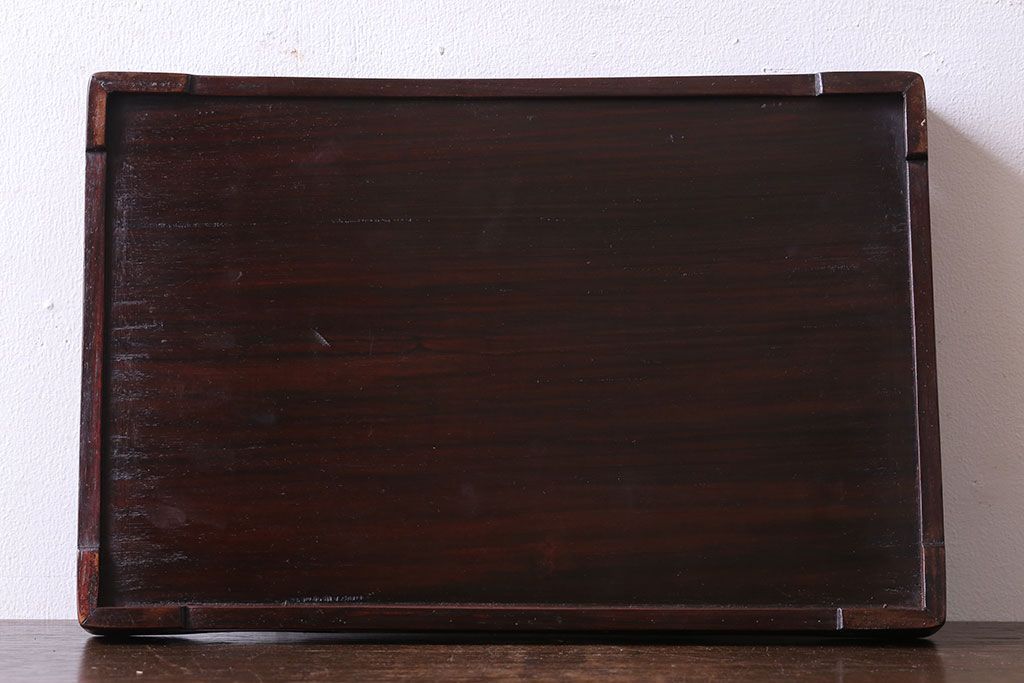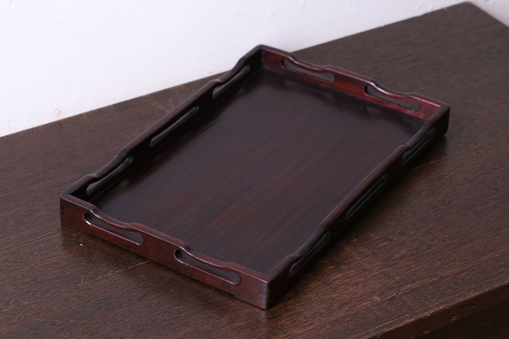 アンティーク雑貨 和製アンティーク 高級品! 漆塗りが渋い味わいの紫檀材アンティークトレー(お盆)(1)