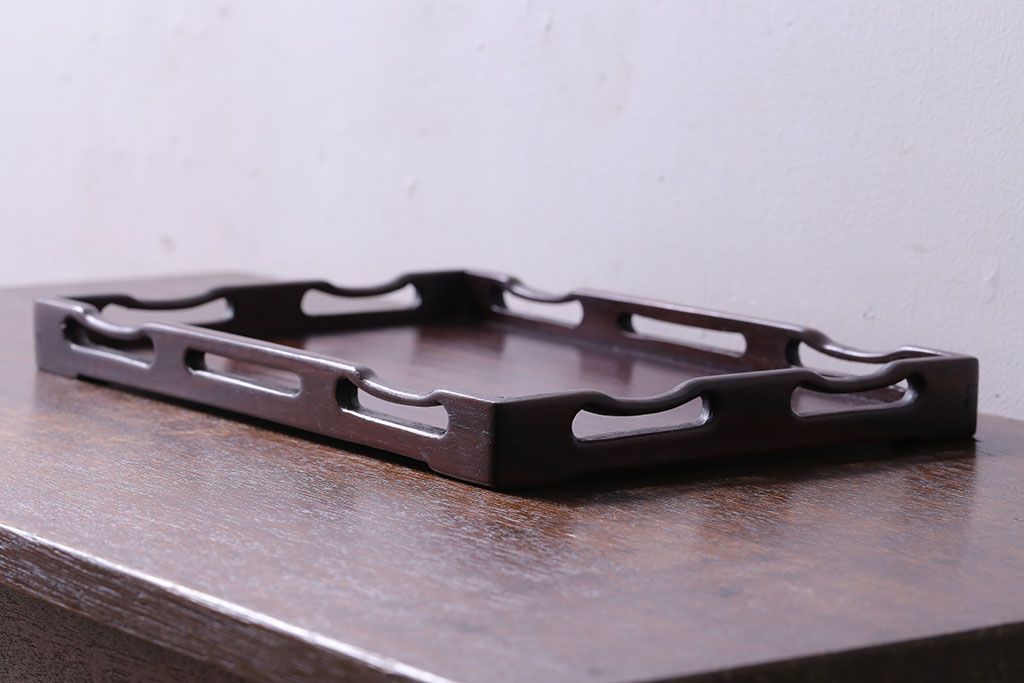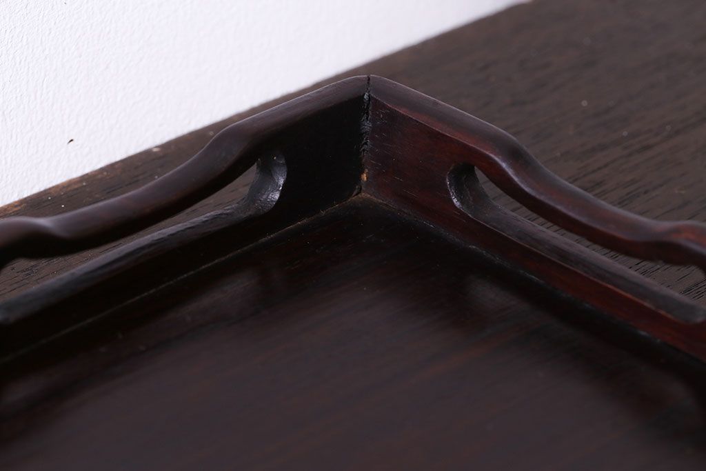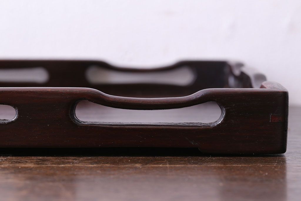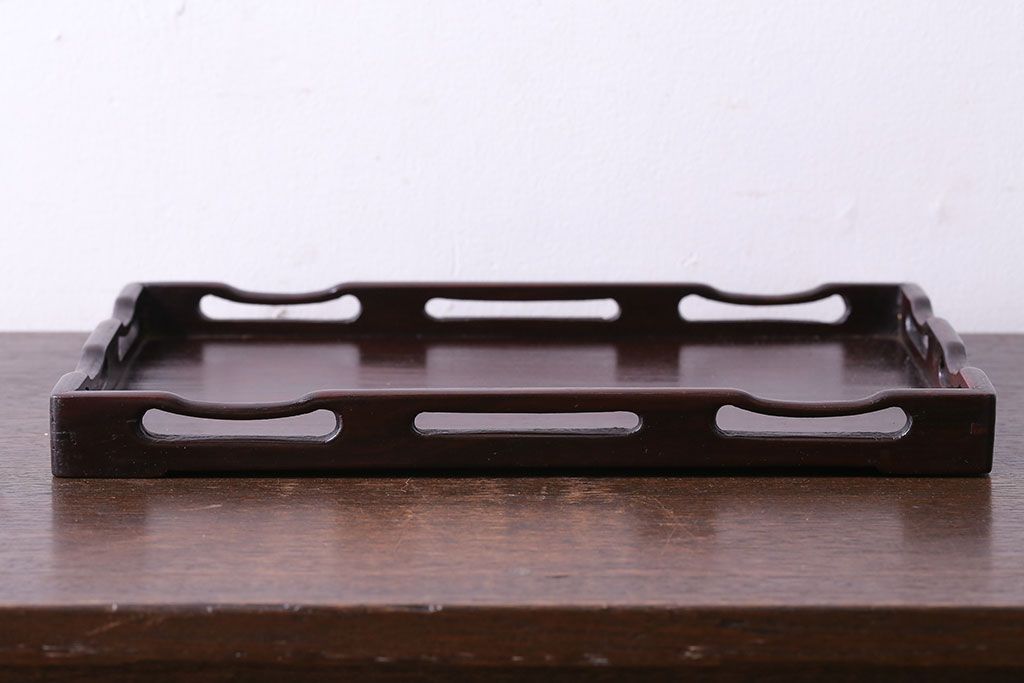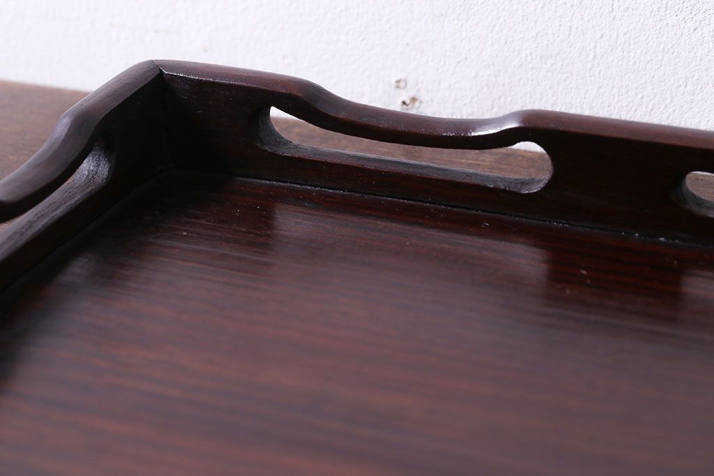 アンティーク雑貨 和製アンティーク 高級品! 漆塗りが渋い味わいの紫檀材アンティークトレー(お盆)(1)