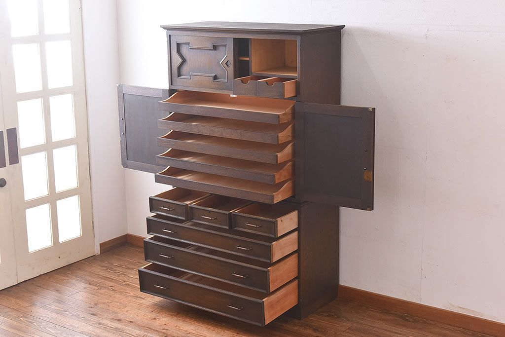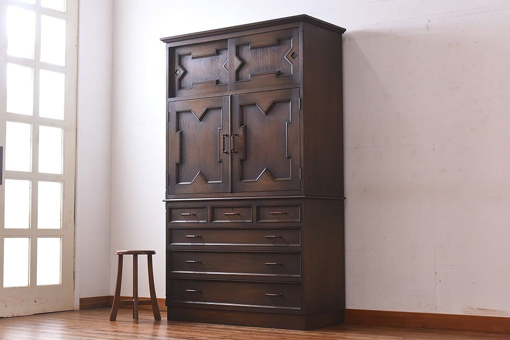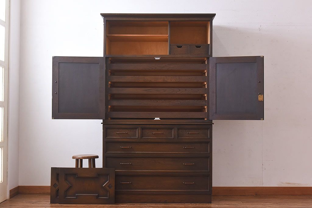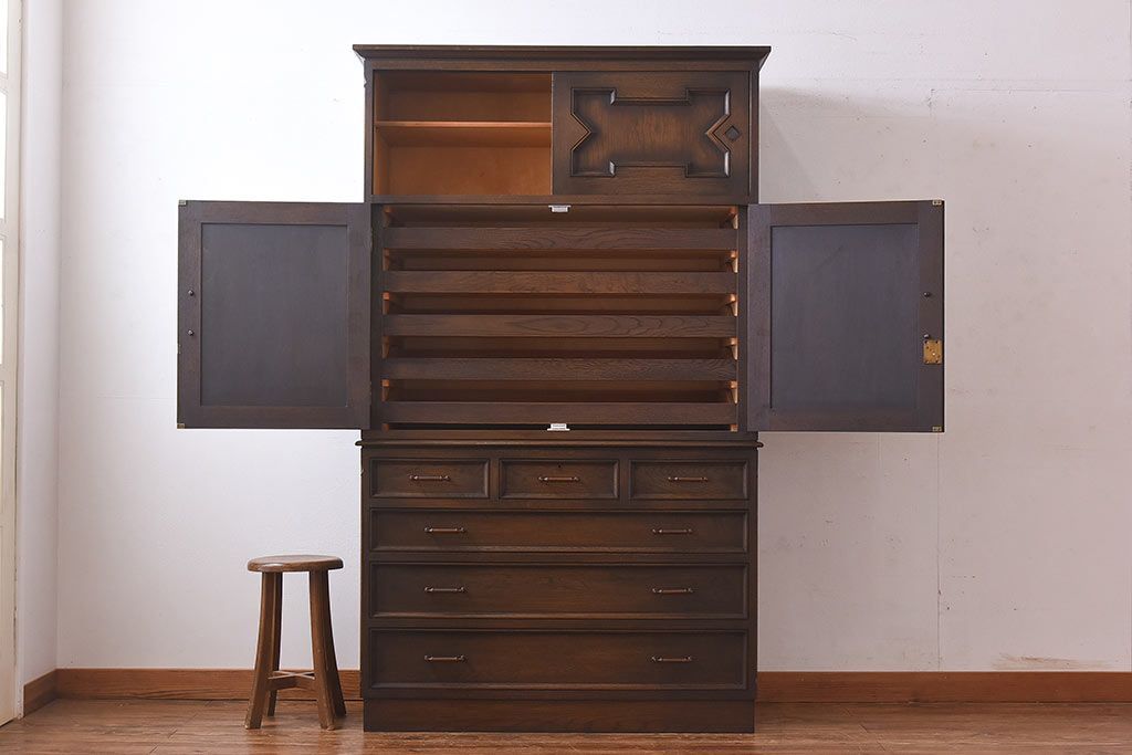 ビンテージ 神戸洋家具 永田良介商店 収納力抜群の戸棚付き衣装箪笥(和タンス、引き出し)(定価約89万円)