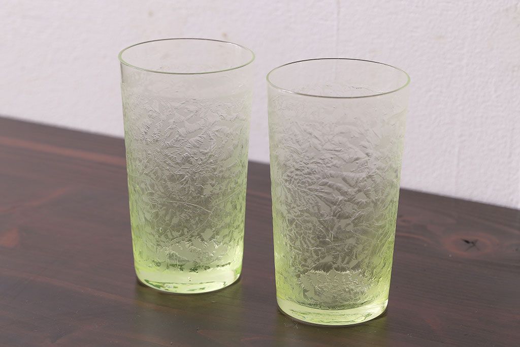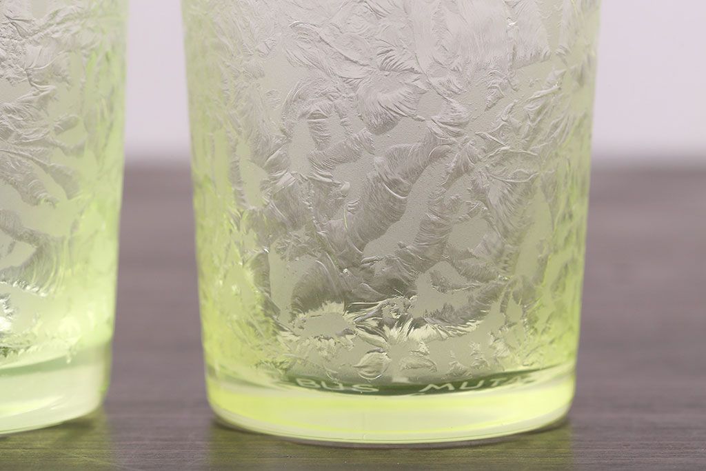 ラフジュ工房> 骨董・美術品> 骨董-ガラス食器 > アンティーク雑貨 西洋アンティーク HELVETIC ウランガラスコップ(グラス)2個セット