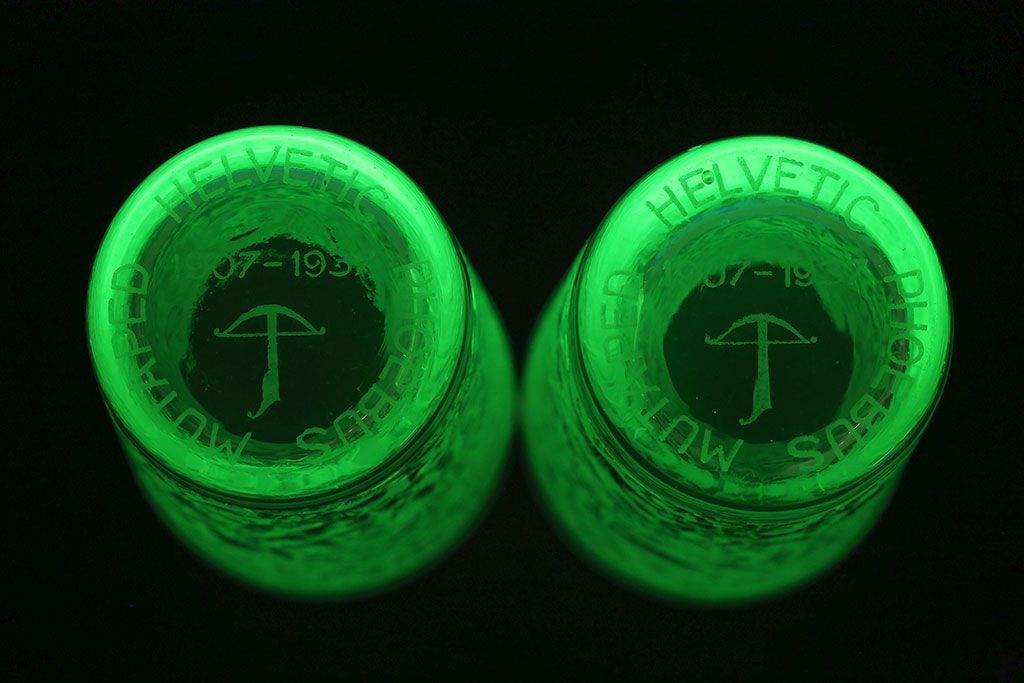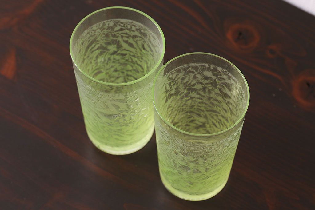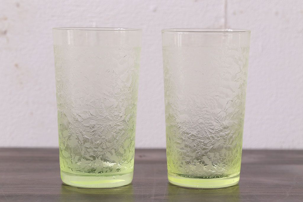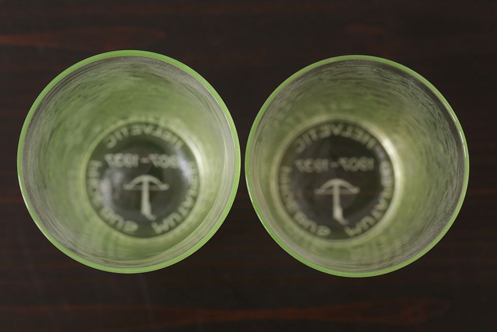 アンティーク雑貨 西洋アンティーク HELVETIC ウランガラスコップ(グラス)2個セット