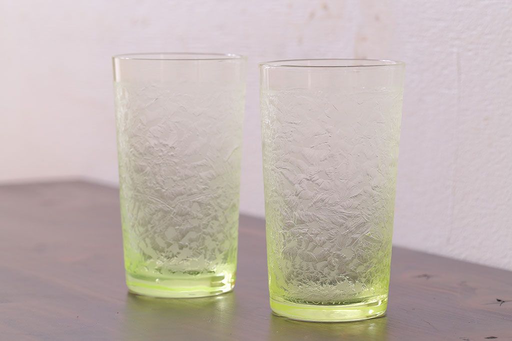 ラフジュ工房> 洋食器・キッチン用品 > アンティーク雑貨 西洋アンティーク HELVETIC ウランガラスコップ(グラス)2個セット