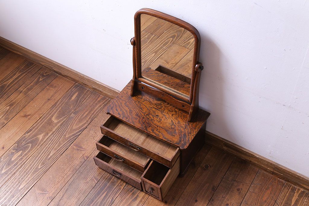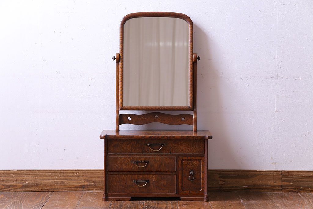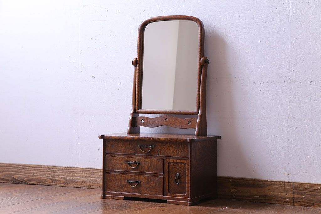 ラフジュ工房> 小物収納・トランク> 小引き出し > アンティーク家具 和製アンティーク 上手物 上品な雰囲気が漂うタモ材のドレッサー(鏡台、鏡、化粧台)