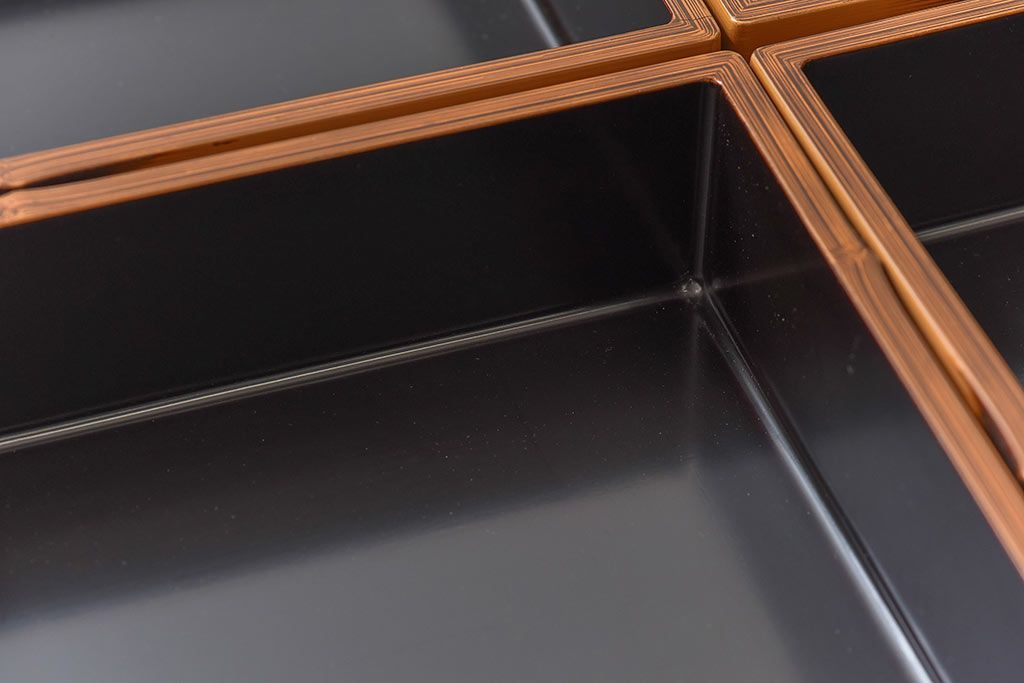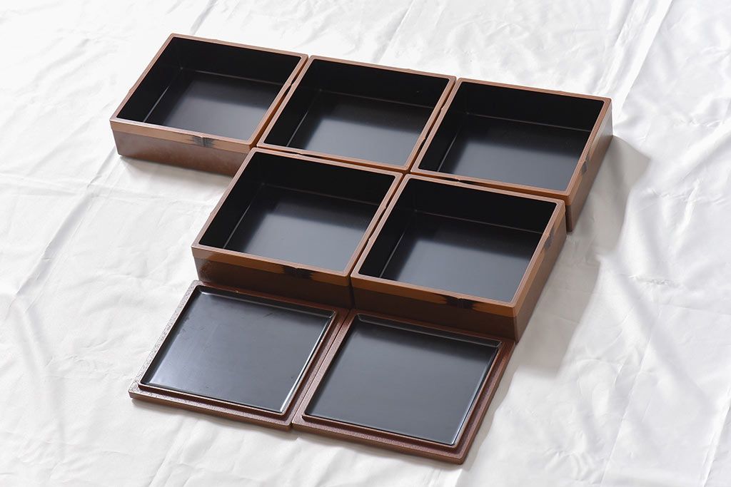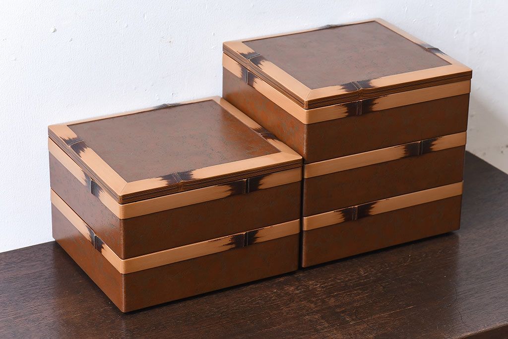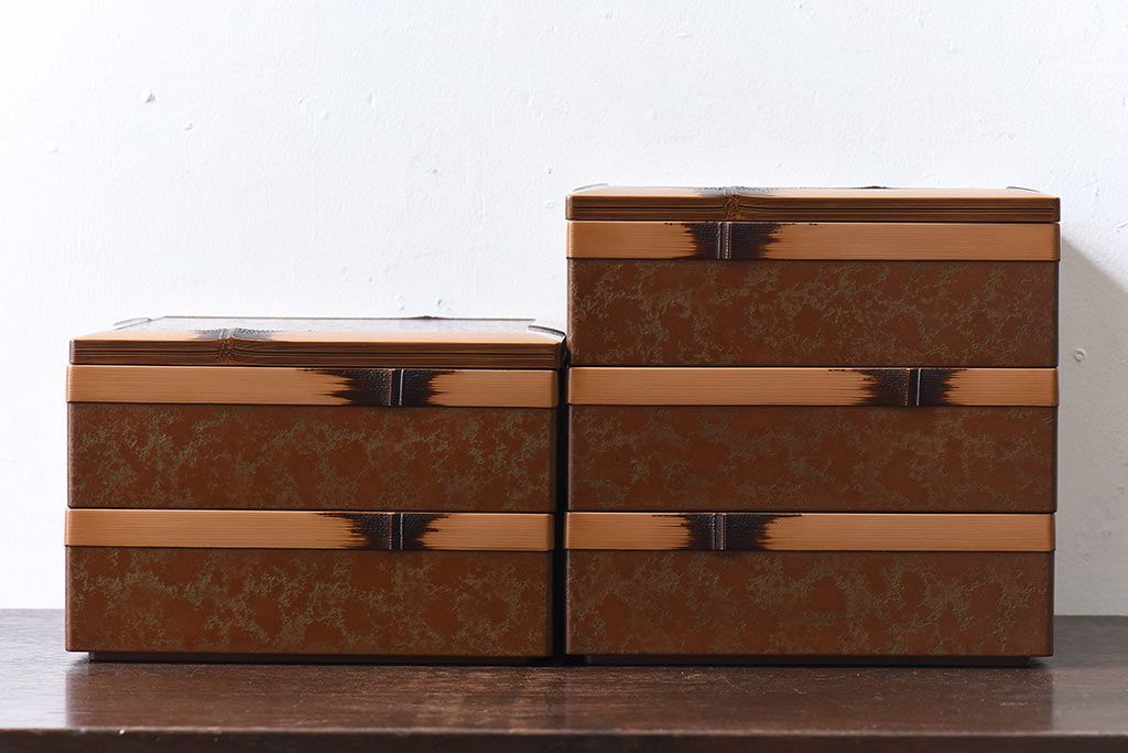ラフジュ工房> 洋食器・キッチン用品 > アンティーク雑貨 木製漆器 竹モチーフの縁が目を引く五段重箱(お重)