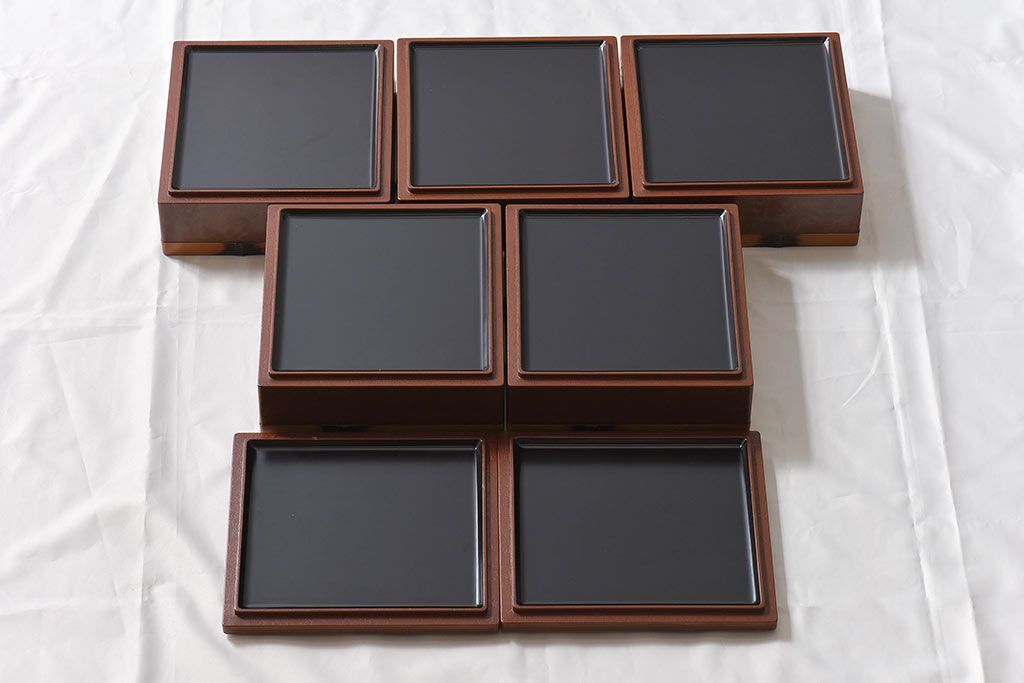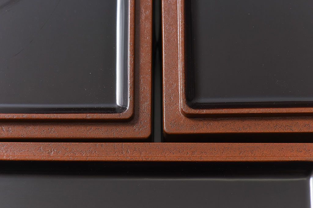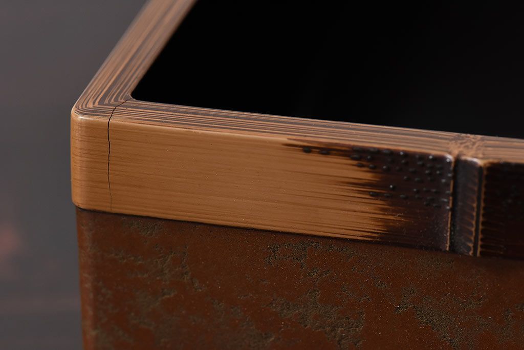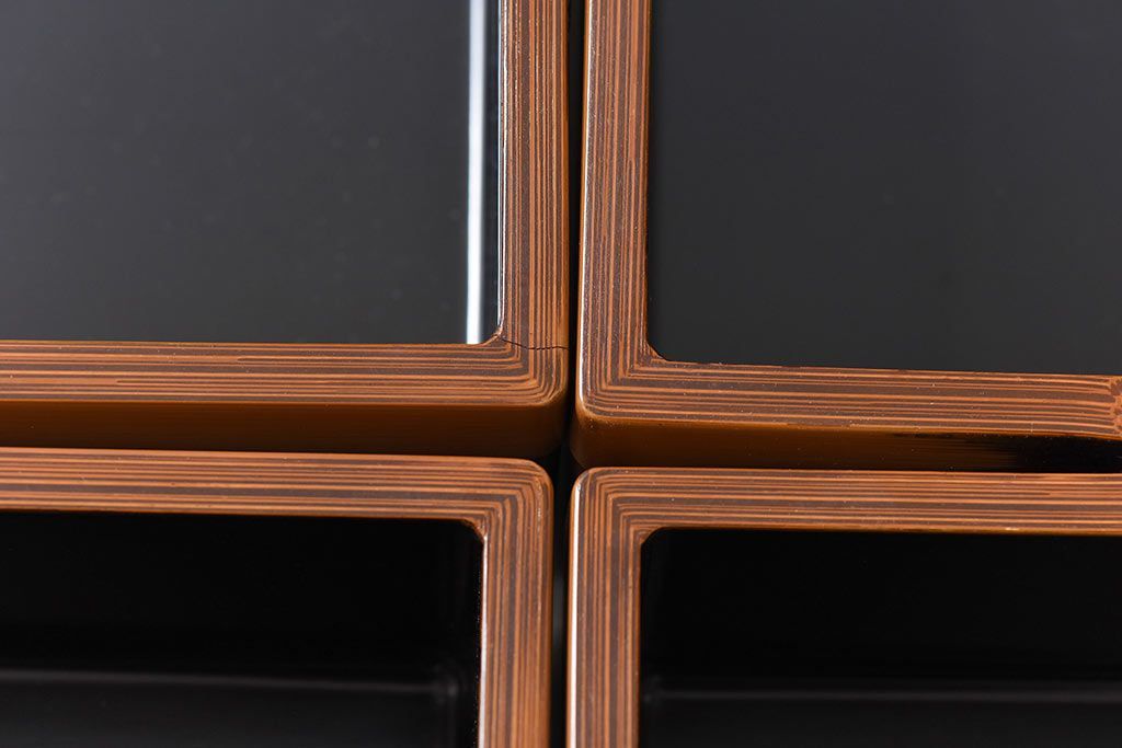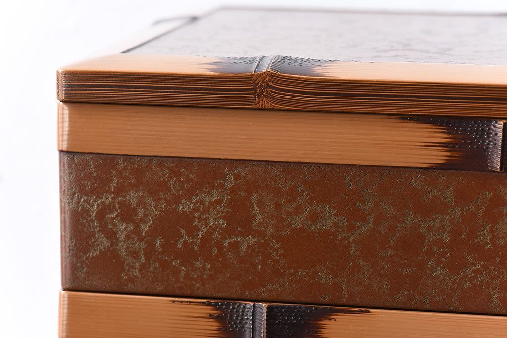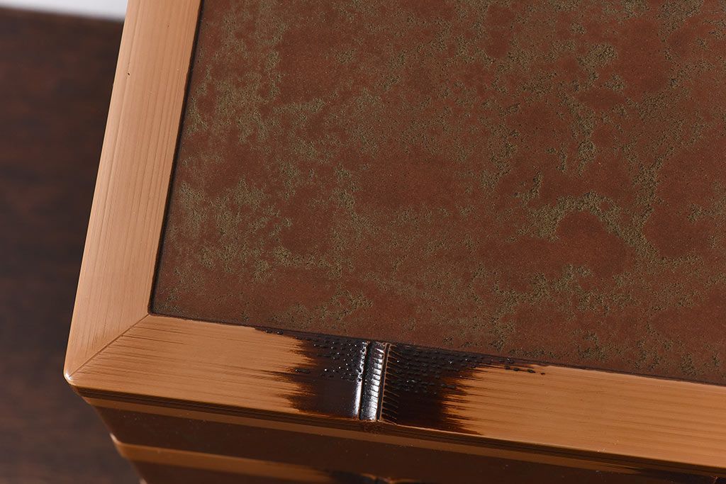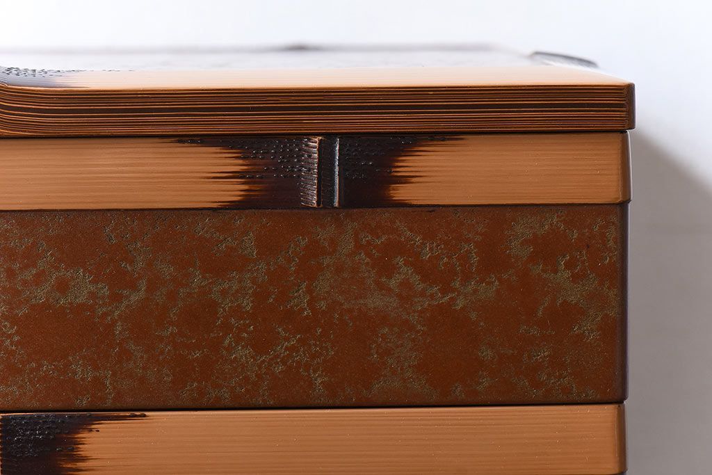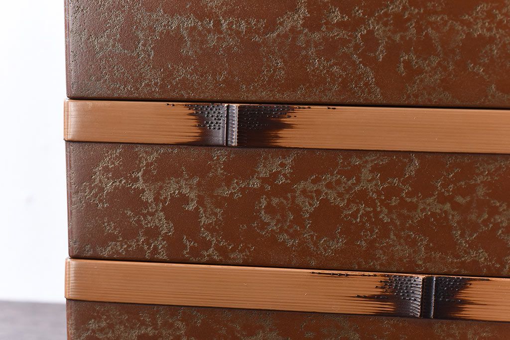 ラフジュ工房> 和食器・茶道具> お盆・お膳・お重 > アンティーク雑貨 木製漆器 竹モチーフの縁が目を引く五段重箱(お重)