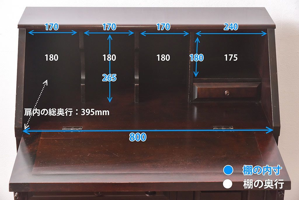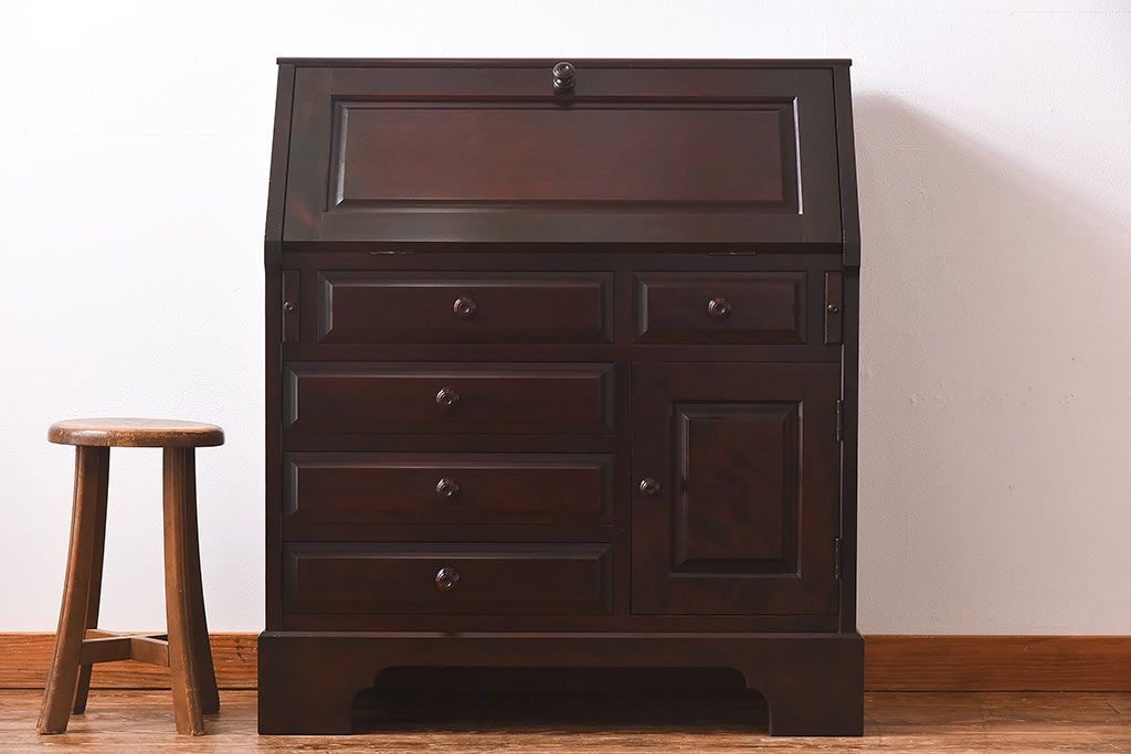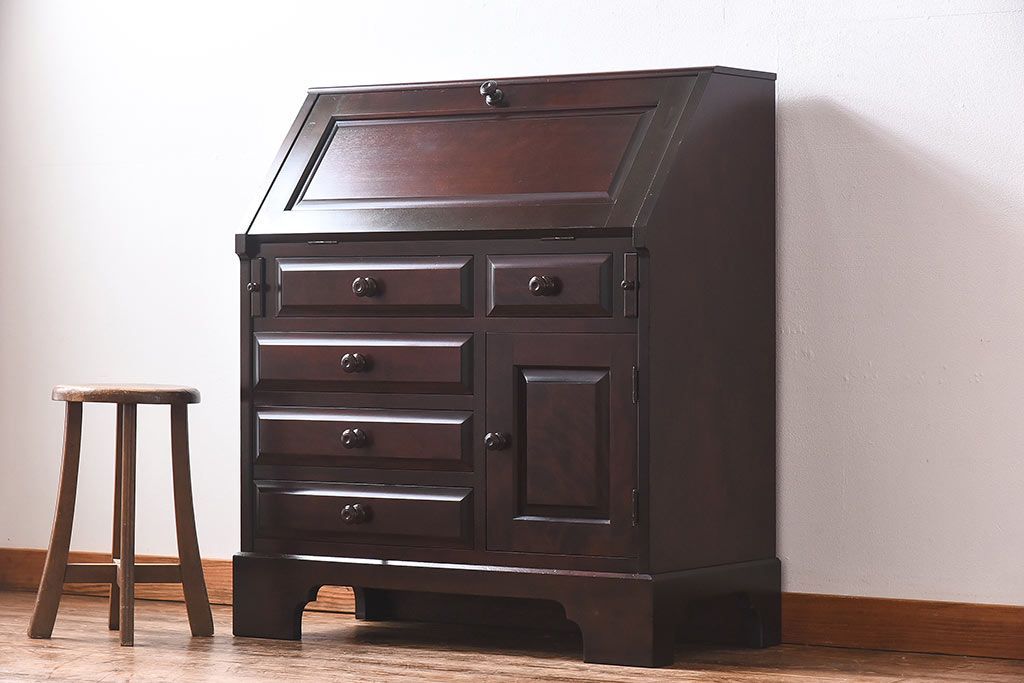 北海道民芸家具 高級感あふれるライティングビューロー(机、引き出し)(定価約34万円)
