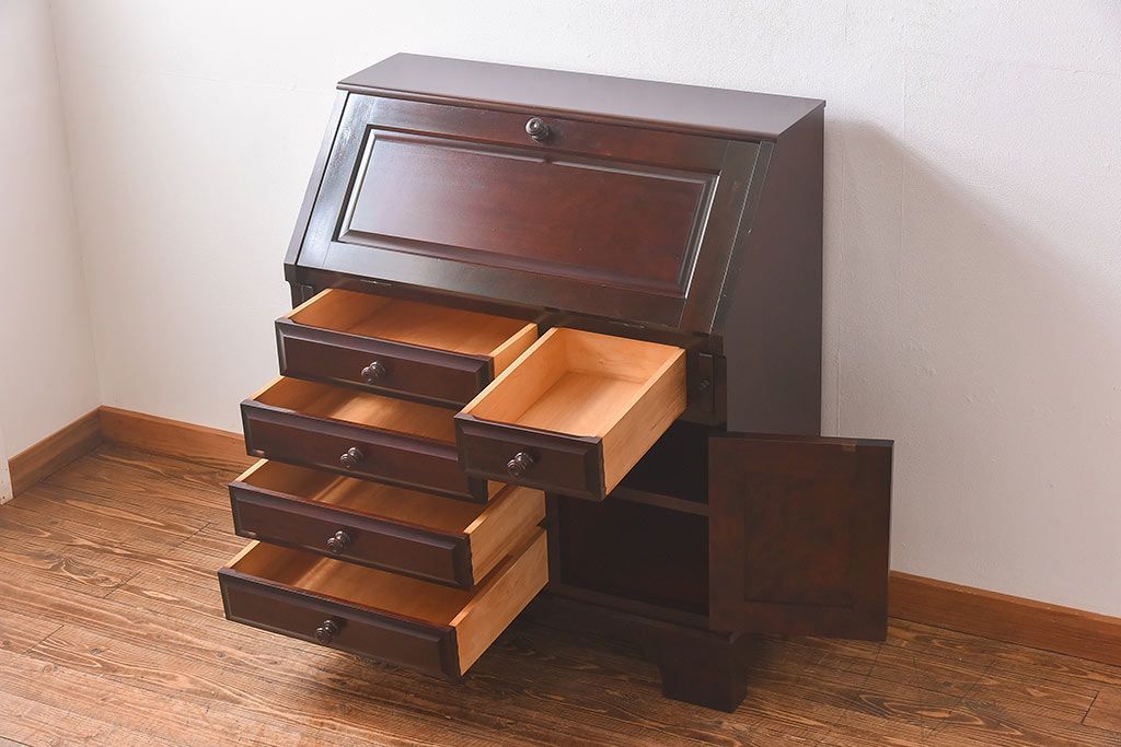 ラフジュ工房> デスク> ワークデスク > 北海道民芸家具 高級感あふれるライティングビューロー(机、引き出し)(定価約34万円)