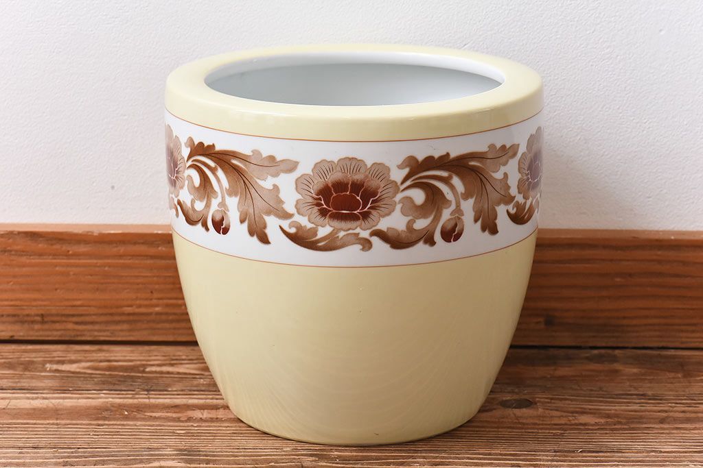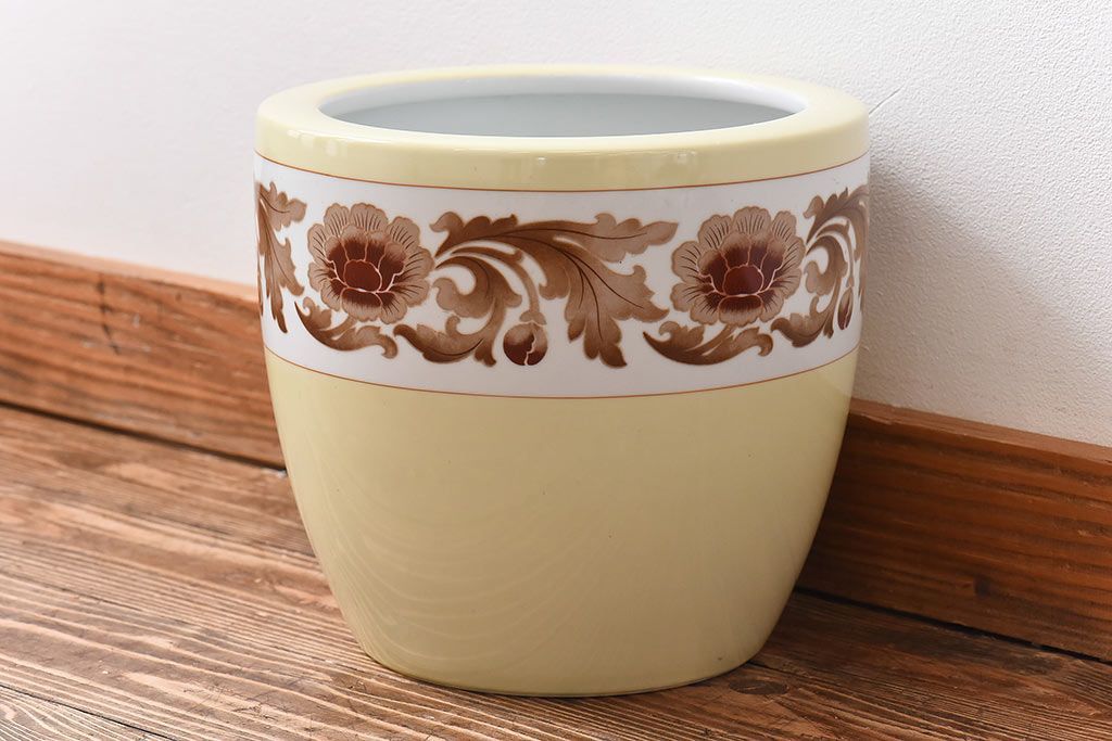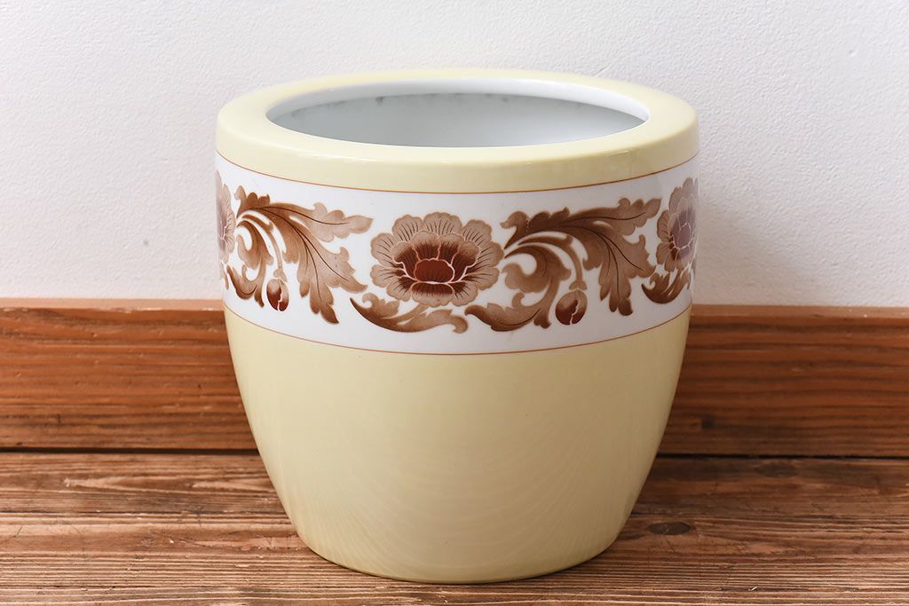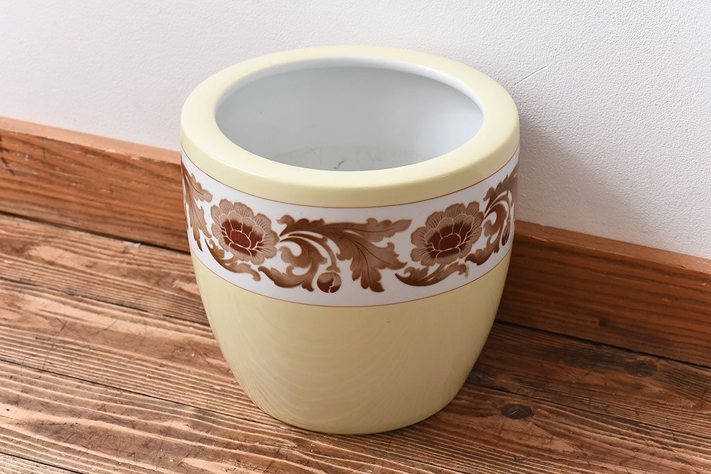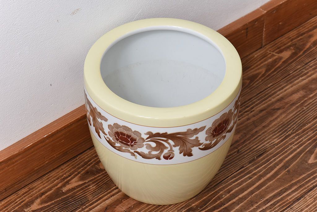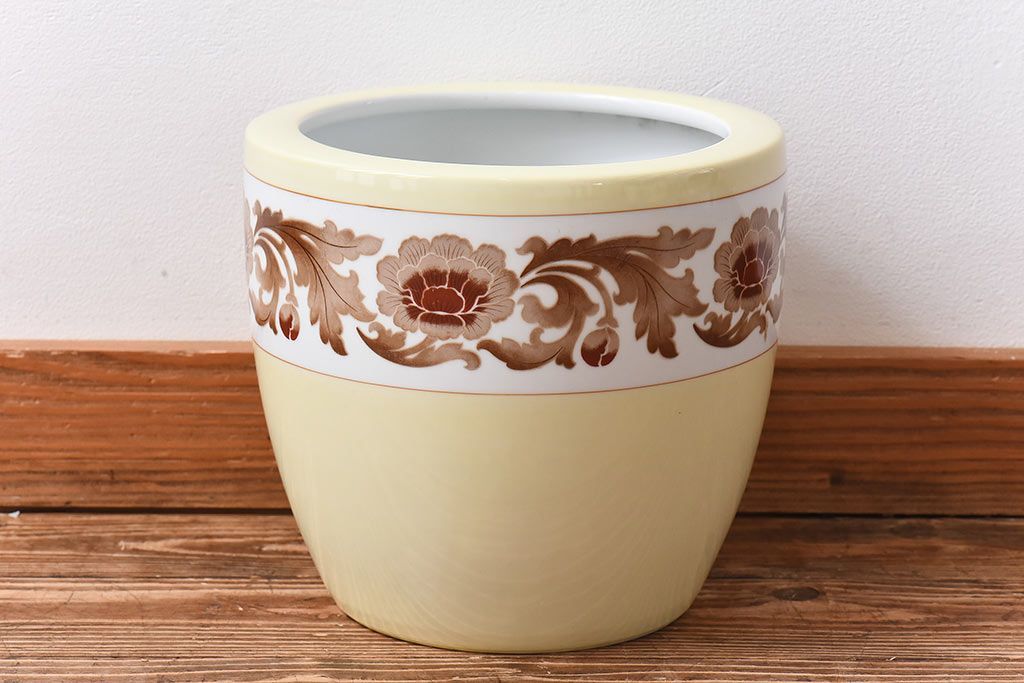 火鉢> 瀬戸火鉢 > アンティーク雑貨 中古 オールドノリタケ(則武・日陶) 菊牡丹文がレトロな火鉢(鉢カバー、手あぶり)