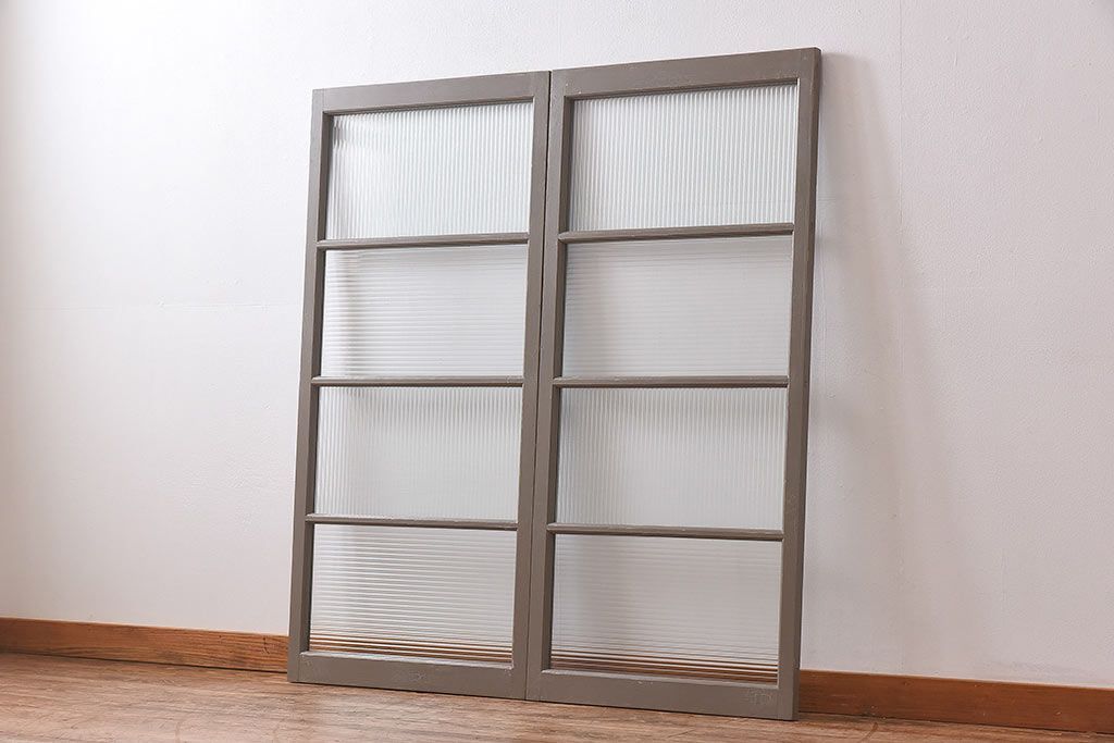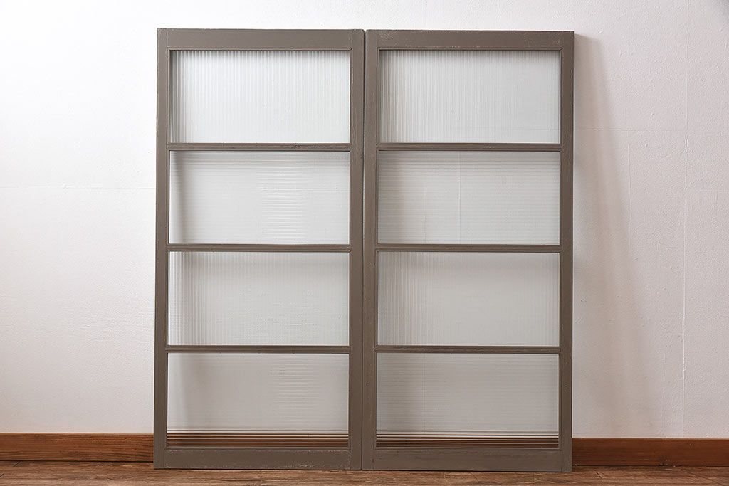 ラフジュ工房> ドア・建具> 2枚・3枚セット > ペイント家具 シャビーシックな風合いのフィックス窓2枚セット(明かり取り、はめ殺し窓、建具)(1)