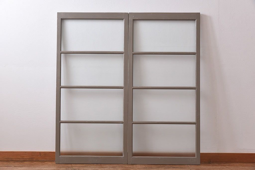 ペイント家具 シャビーシックな風合いのフィックス窓2枚セット(明かり取り、はめ殺し窓、建具)(1)