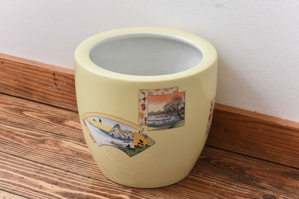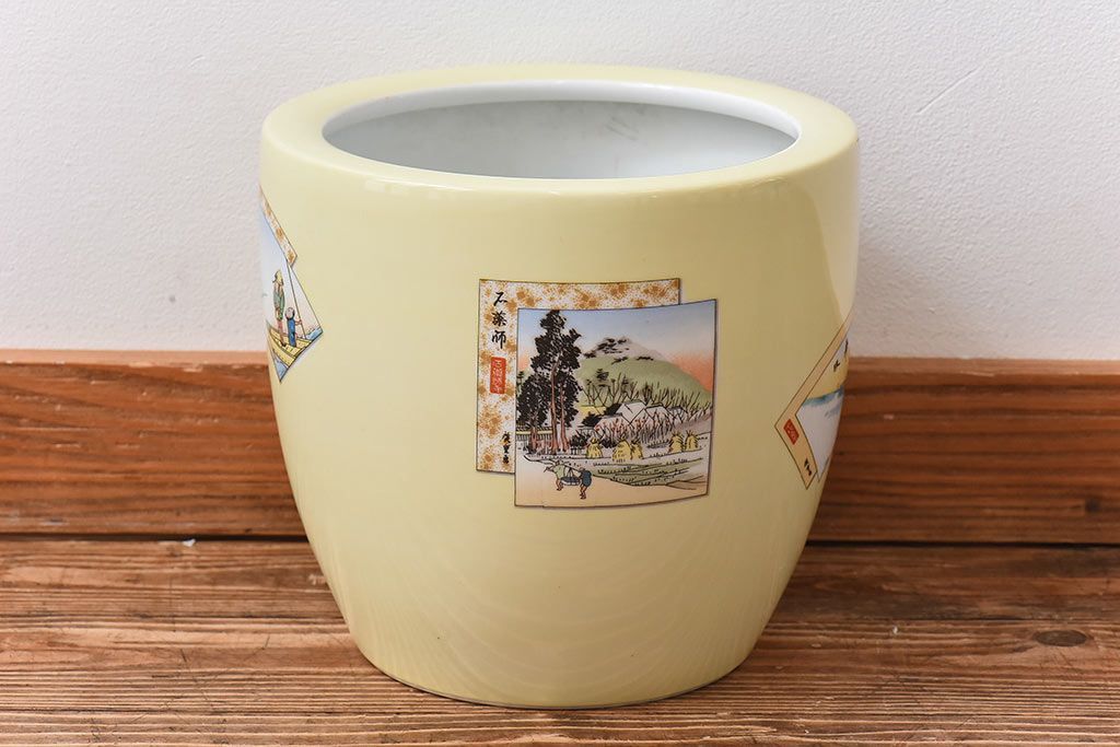 火鉢> 瀬戸火鉢 > 和製アンティーク オールドノリタケ 日陶(則武) 「東海道五十三次」火鉢(瀬戸火鉢、Noritake、noritake、NORITAKE、手あぶり、鉢カバー、傘立て、ディスプレイ)(1)(R-028057)
