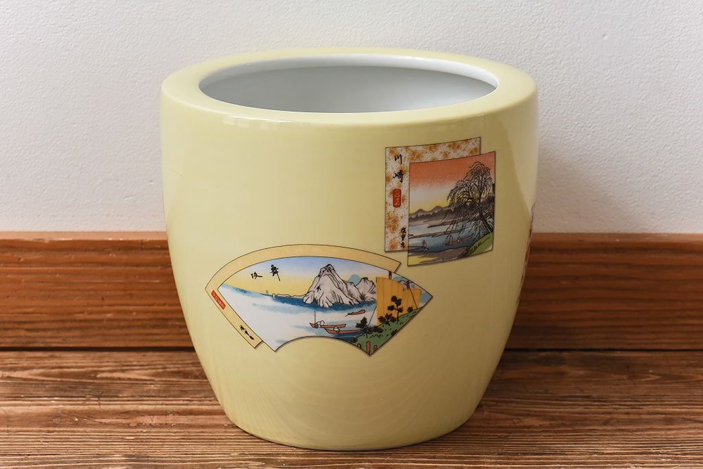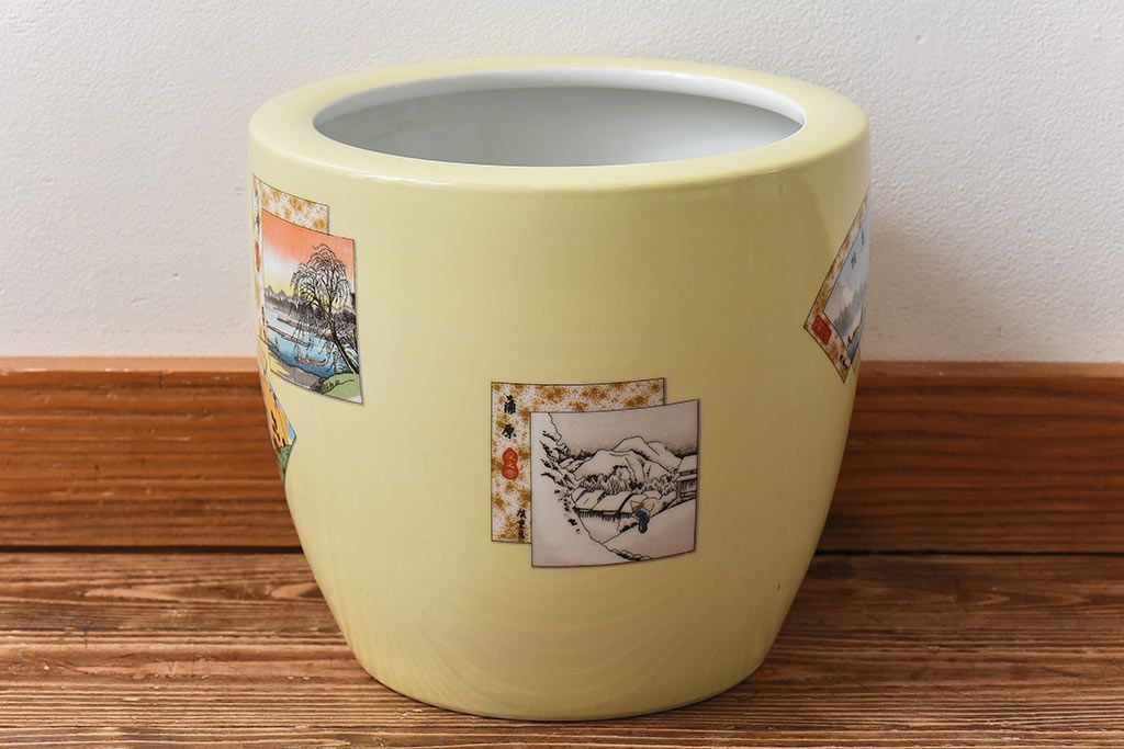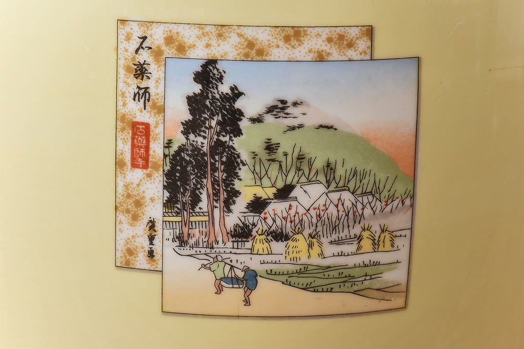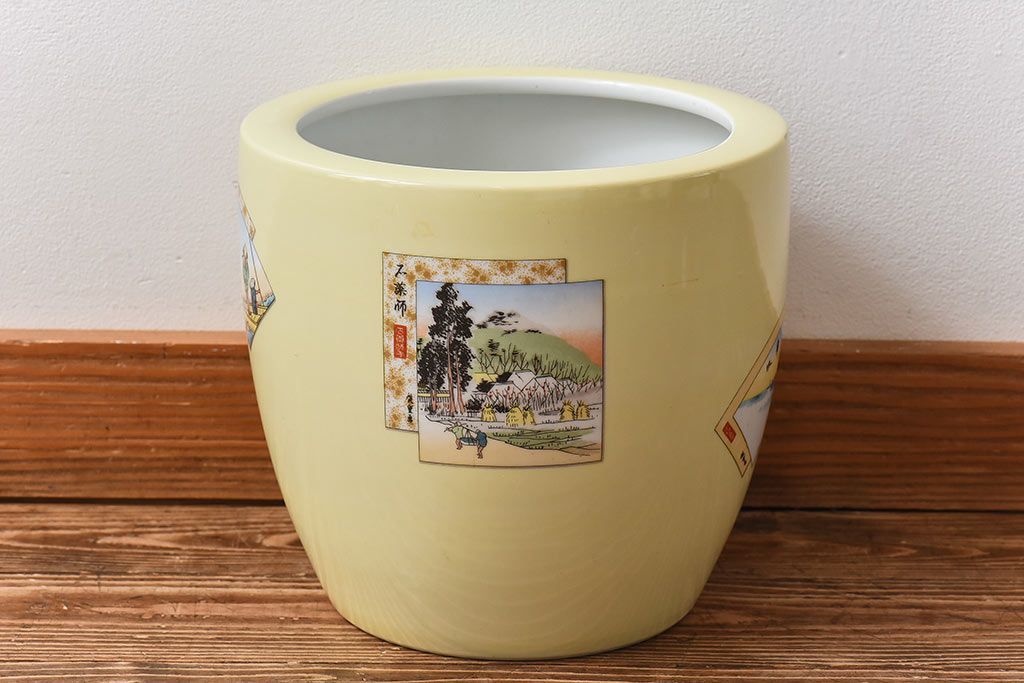 火鉢> 瀬戸火鉢 > アンティーク雑貨 オールドノリタケ(日陶) 「東海道五十三次」火鉢(手あぶり、鉢カバー、傘立て)(2)