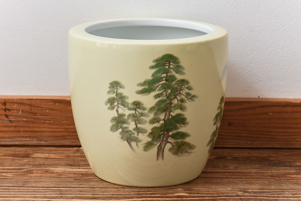 和製アンティーク オールドノリタケ 日陶(則武) 松の図が印象的な火鉢(瀬戸火鉢、Noritake、noritake、NORITAKE、手あぶり、鉢カバー、ディスプレイ)(R-028061)
