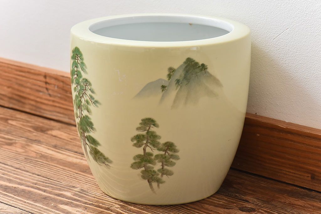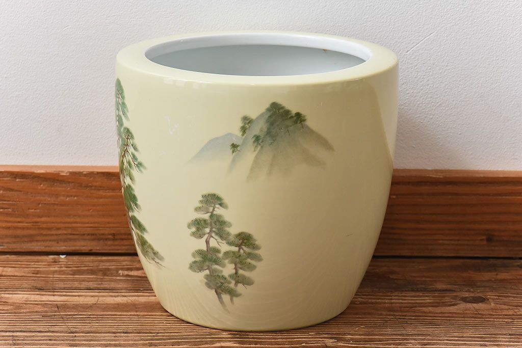 火鉢> 瀬戸火鉢 > 和製アンティーク オールドノリタケ 日陶(則武) 松の図が印象的な火鉢(瀬戸火鉢、Noritake、noritake、NORITAKE、手あぶり、鉢カバー、ディスプレイ)(R-028061)