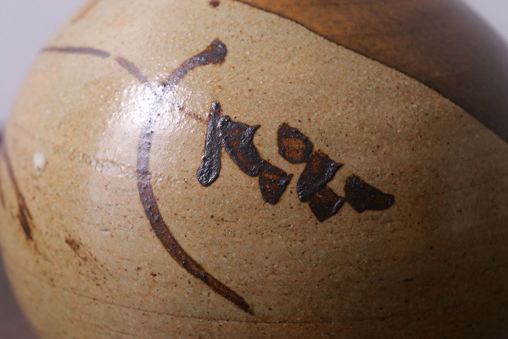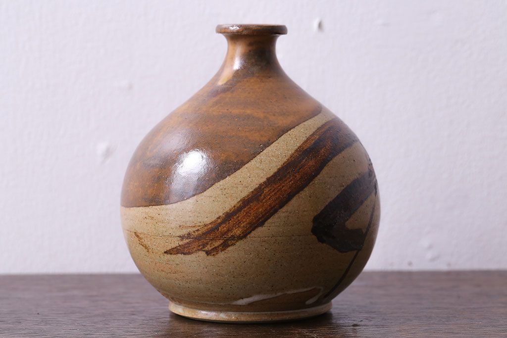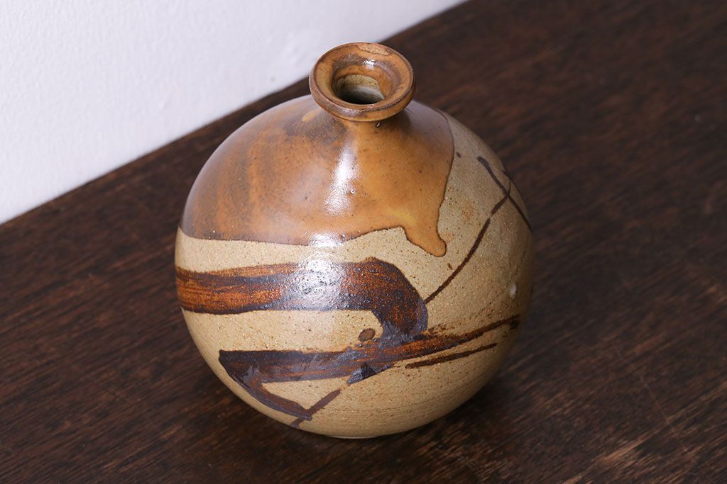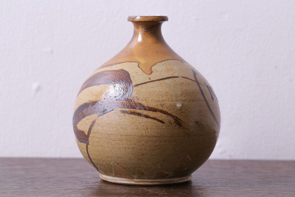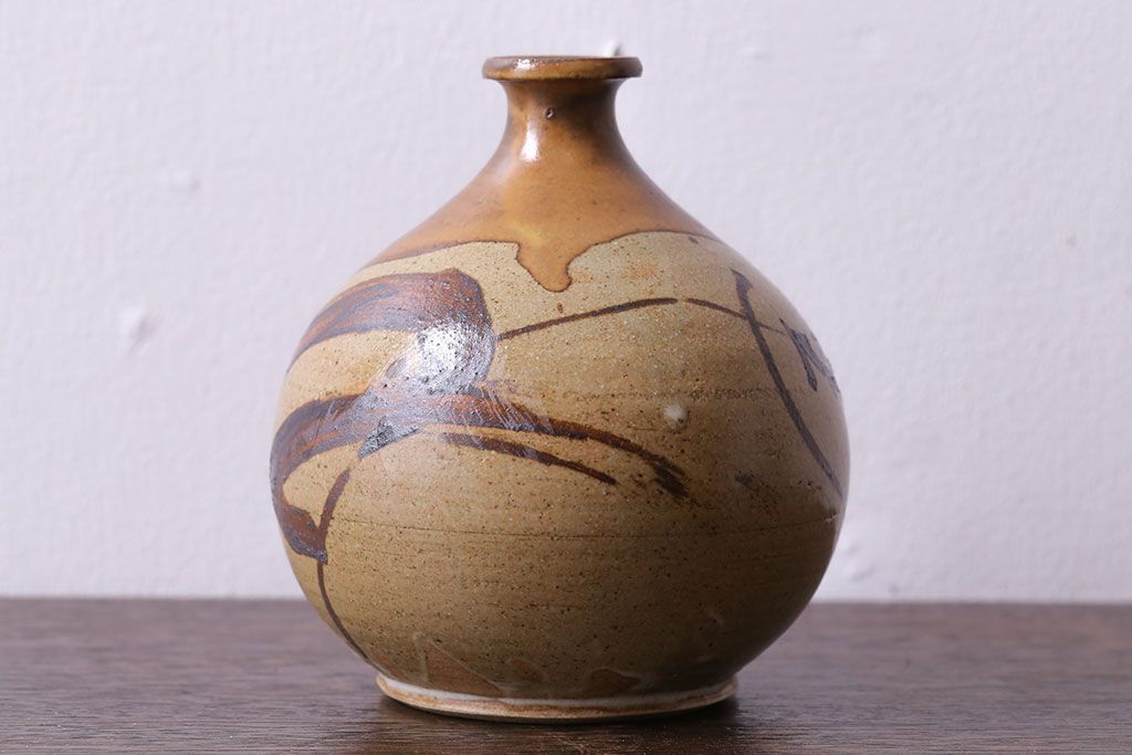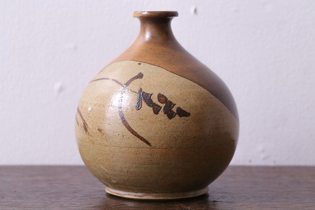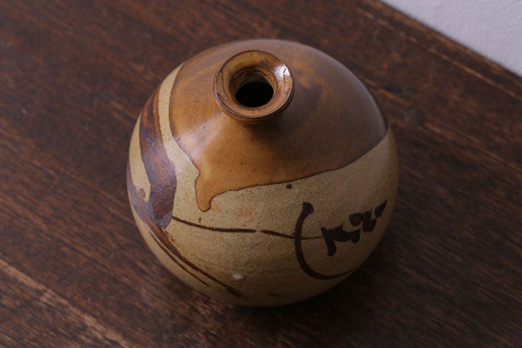 アンティーク雑貨 昭和期 笠間焼 中野晃嗣 草文一輪挿(花瓶、花器)