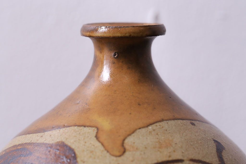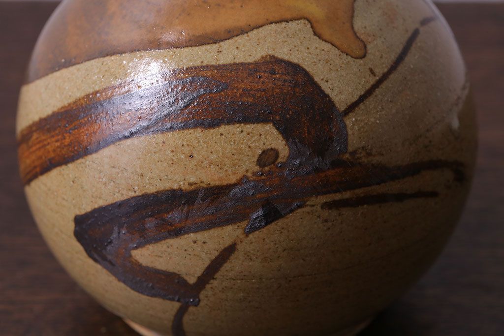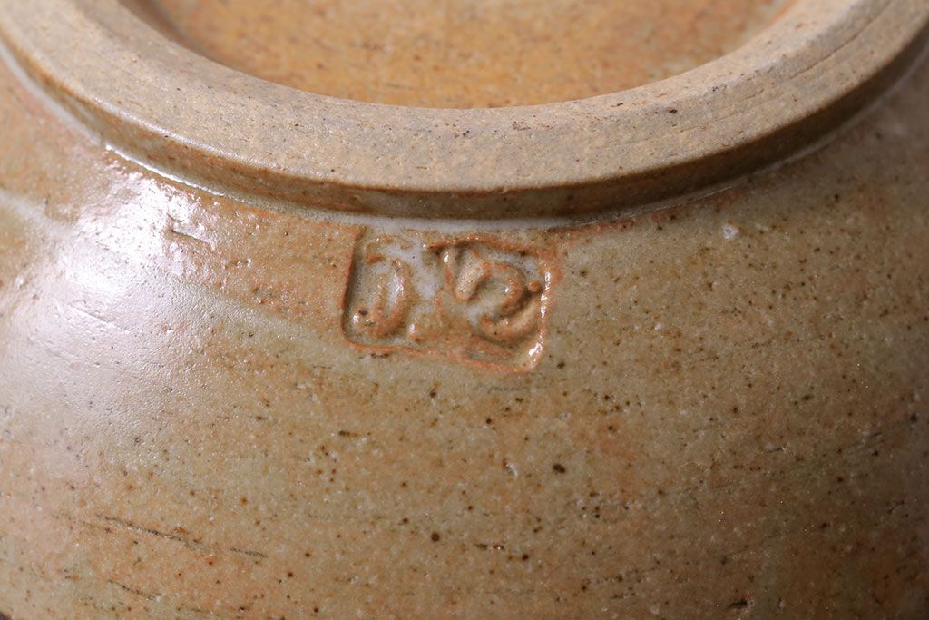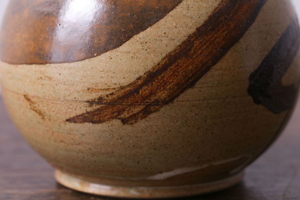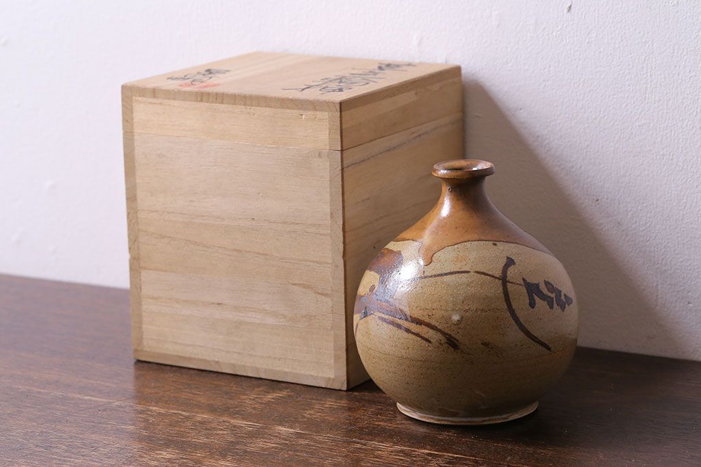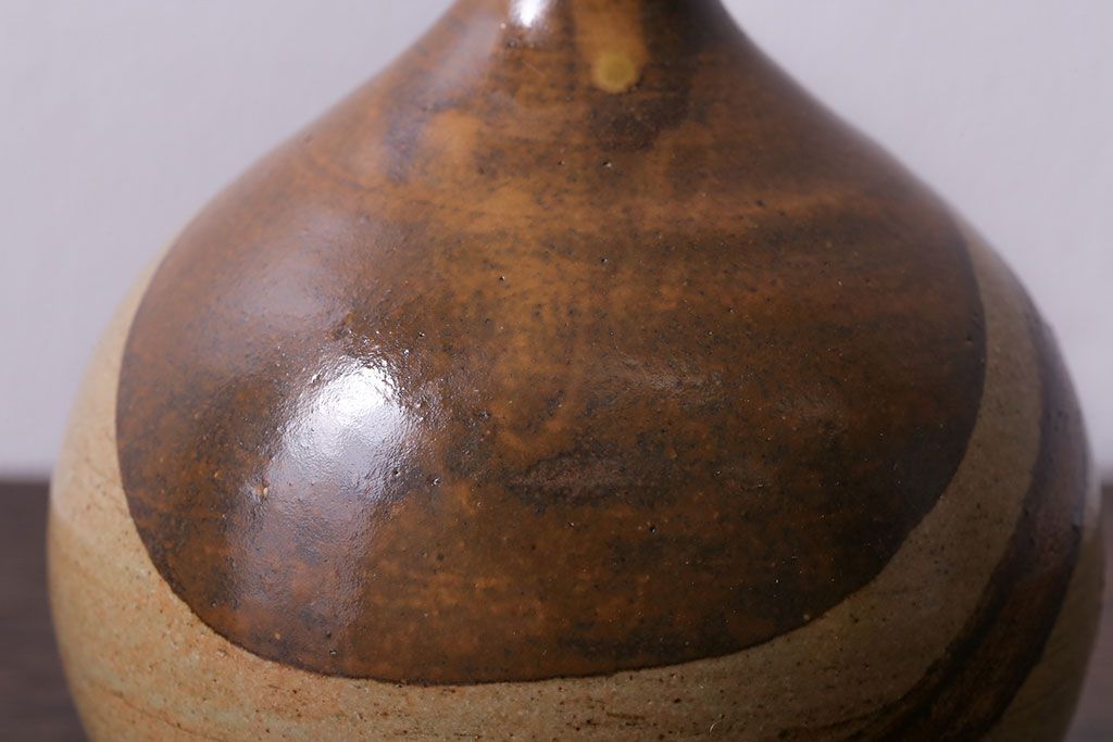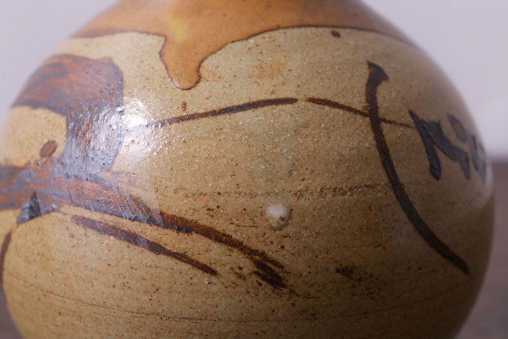 アンティーク雑貨 昭和期 笠間焼 中野晃嗣 草文一輪挿(花瓶、花器)
