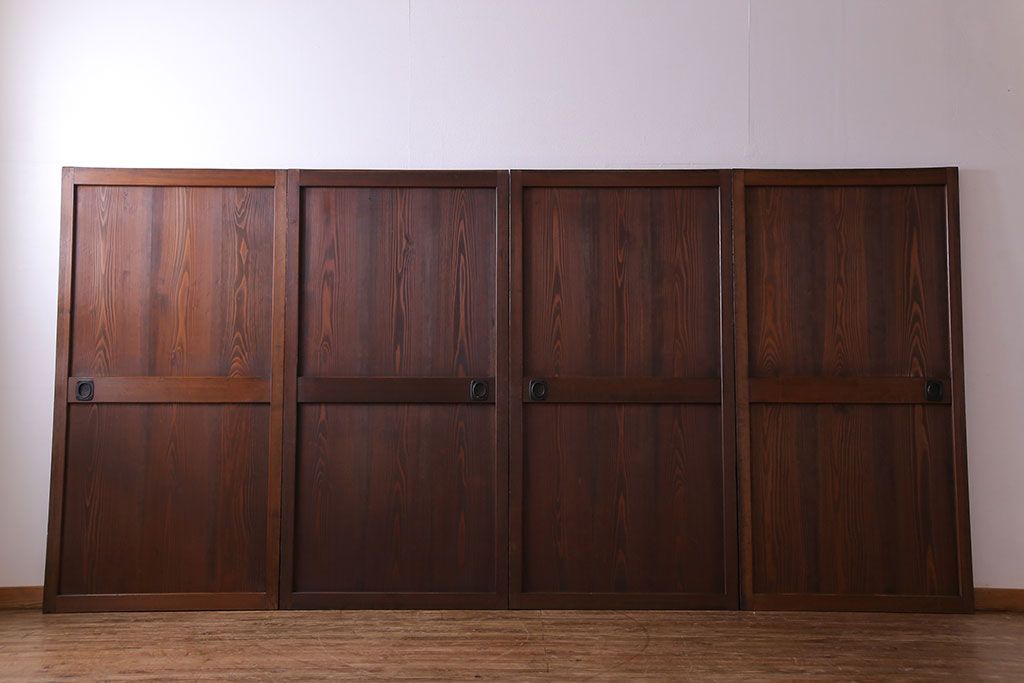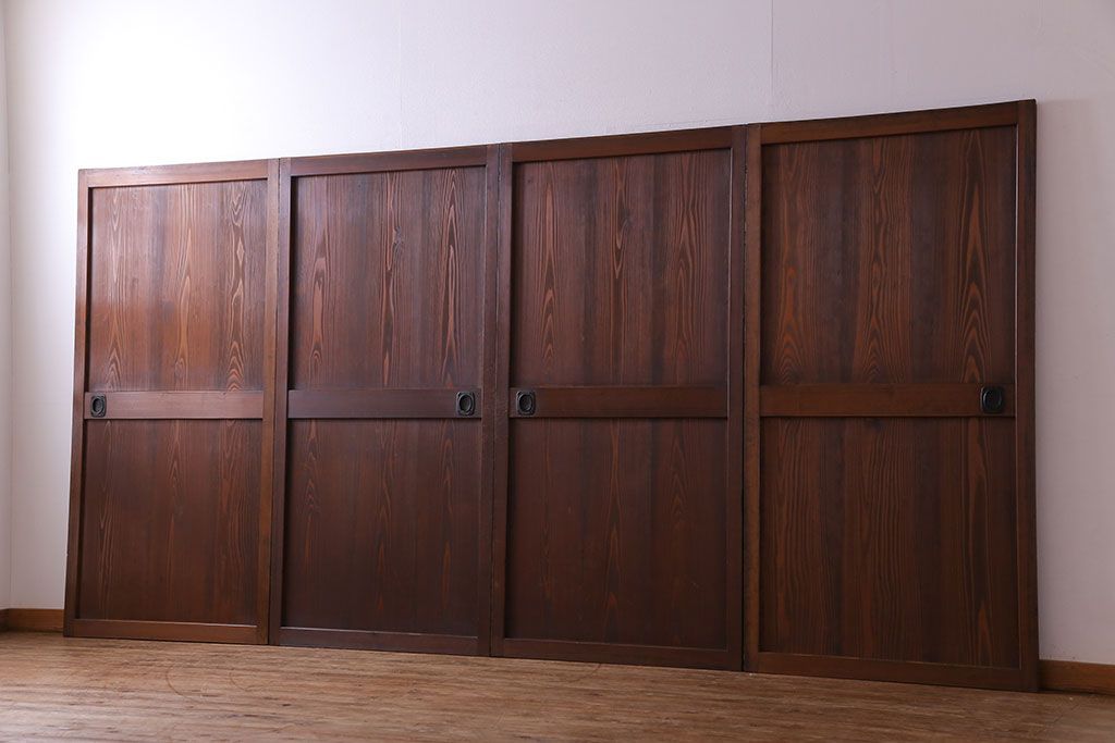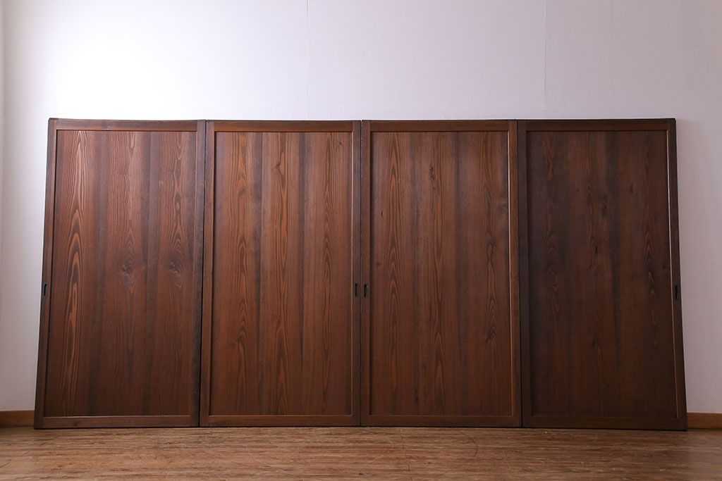 和製アンティーク 明治〜大正期の味わい深い杉材板戸(引き戸)4枚セットです。