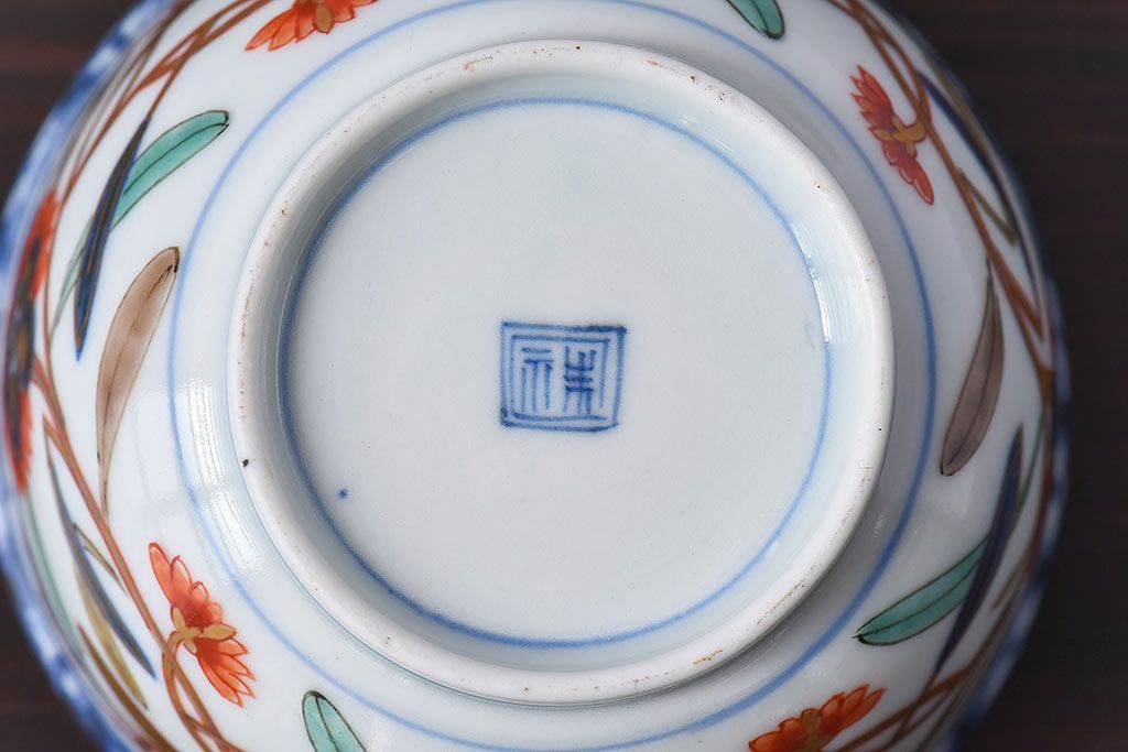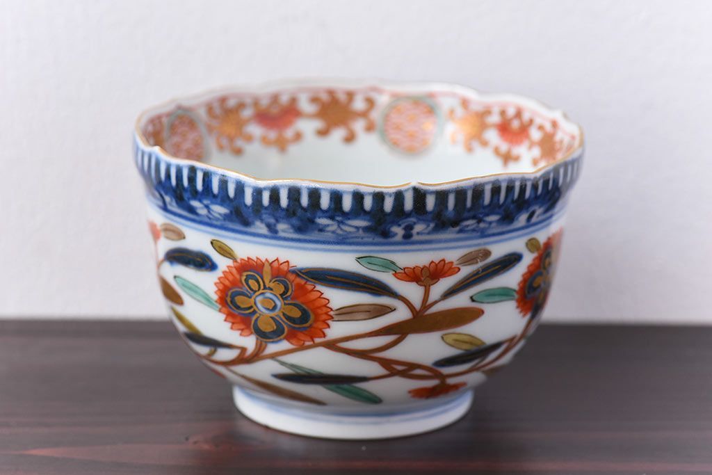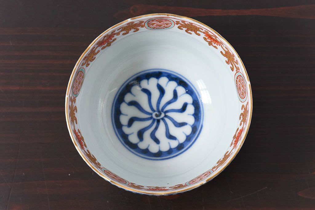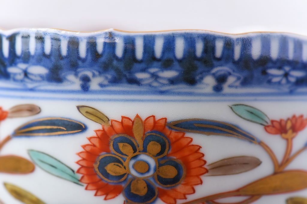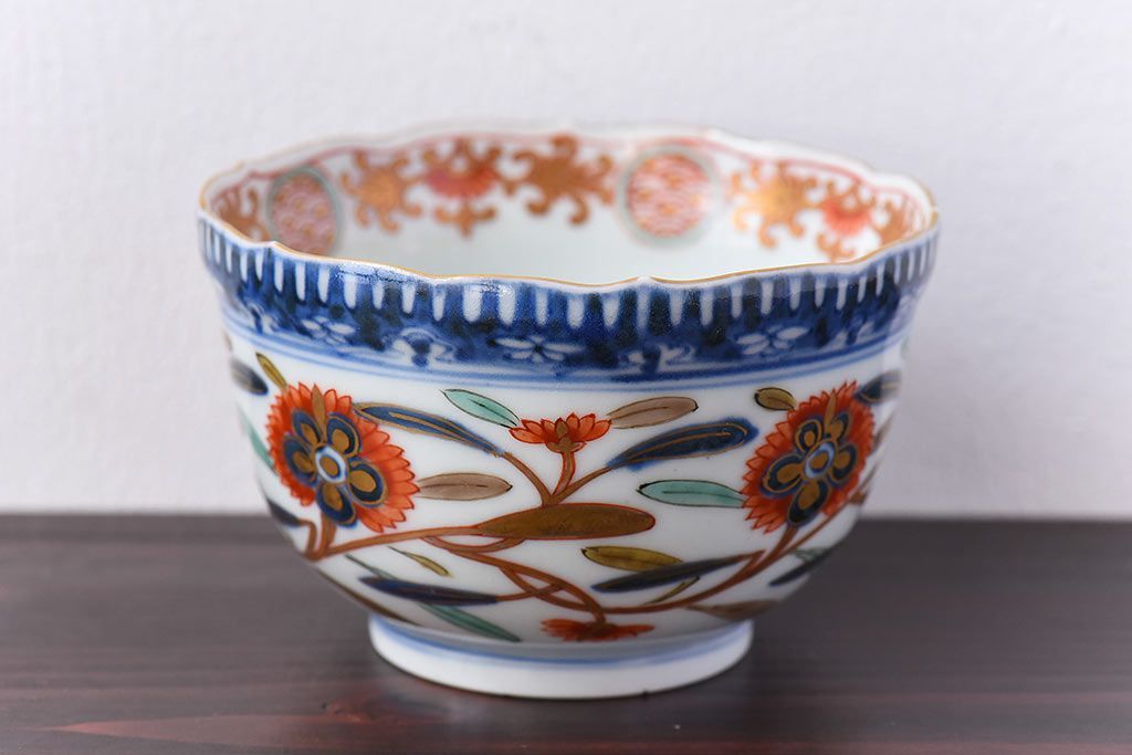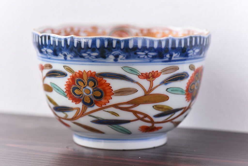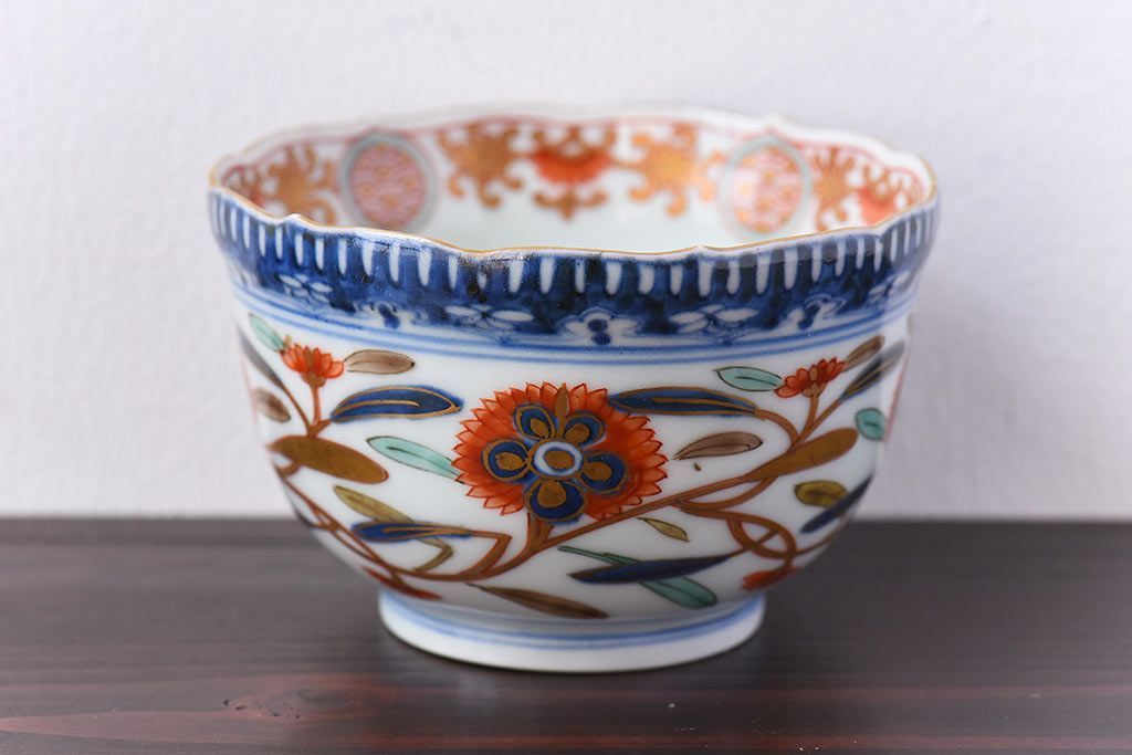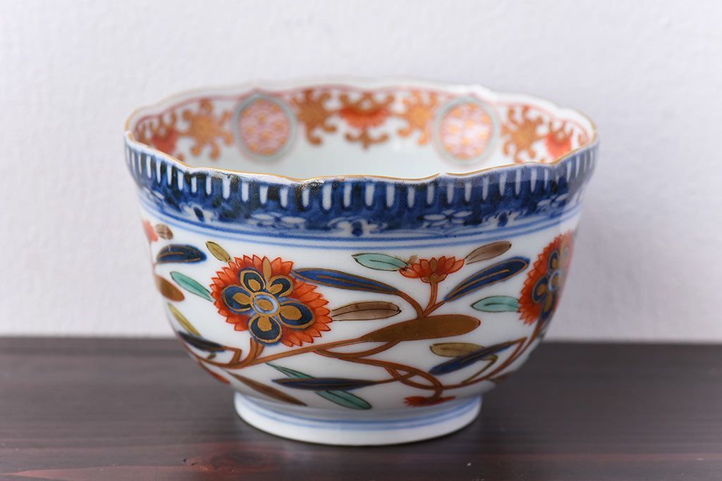 アンティーク雑貨 江戸期 華やかな色合いが目を引く色絵向付(和食器)(2)