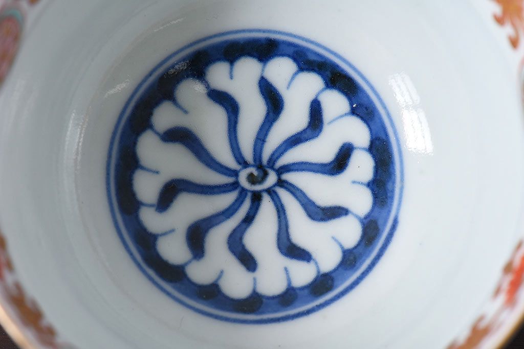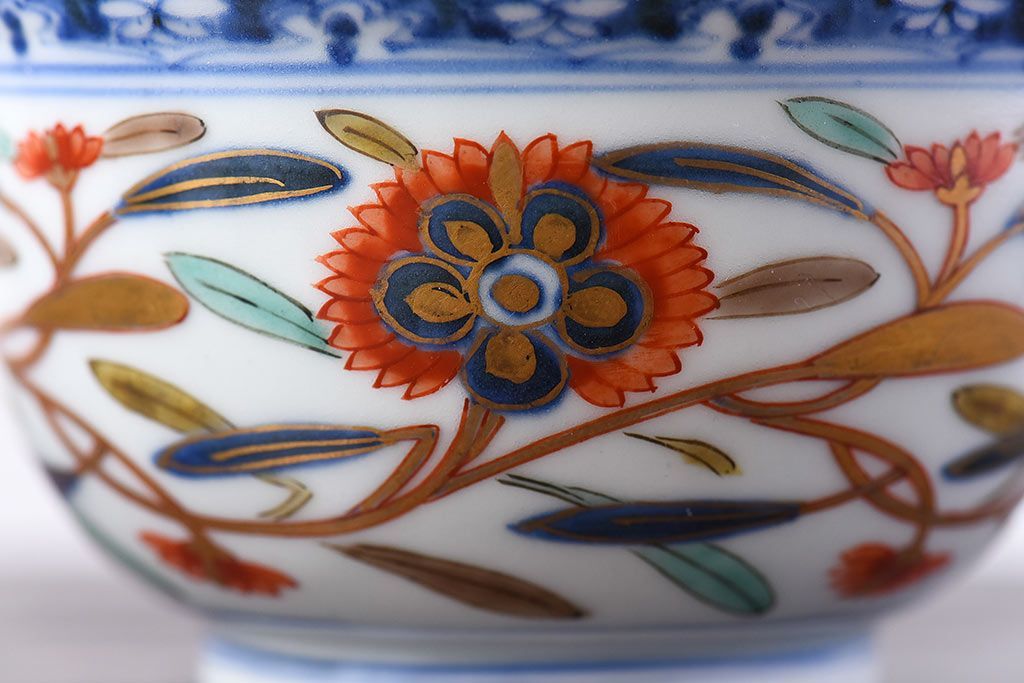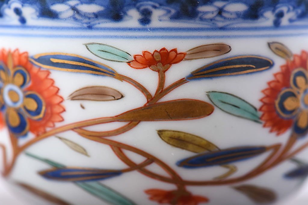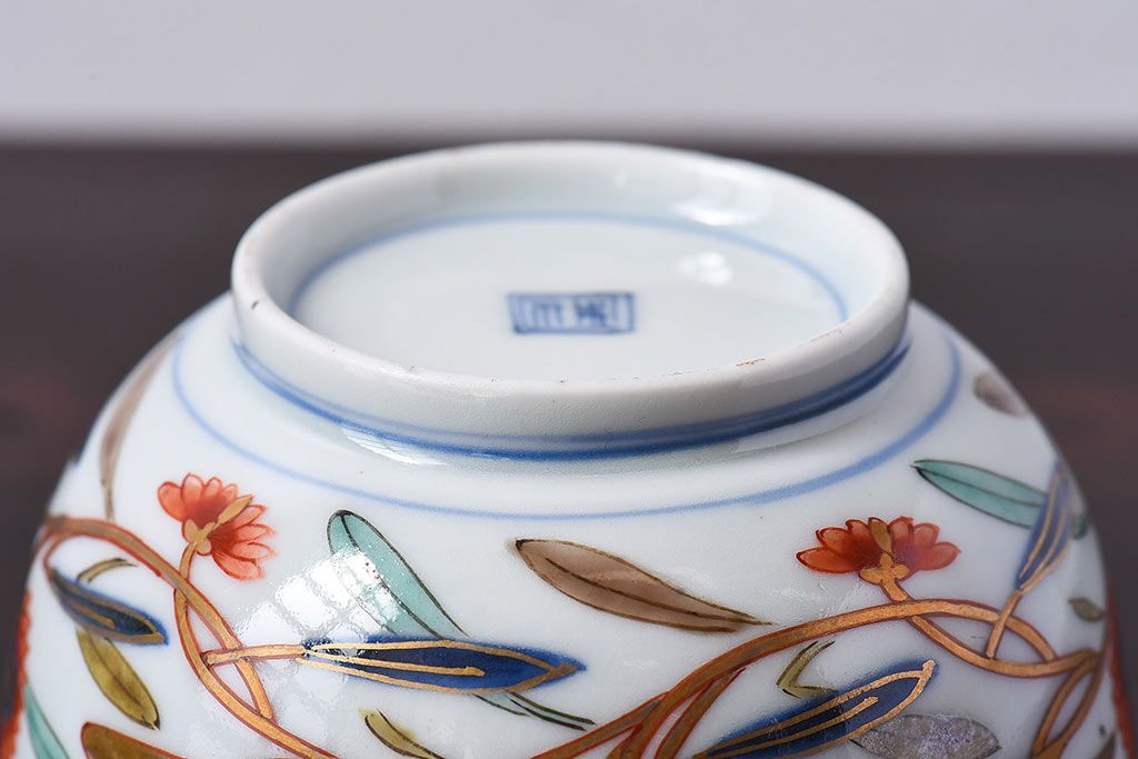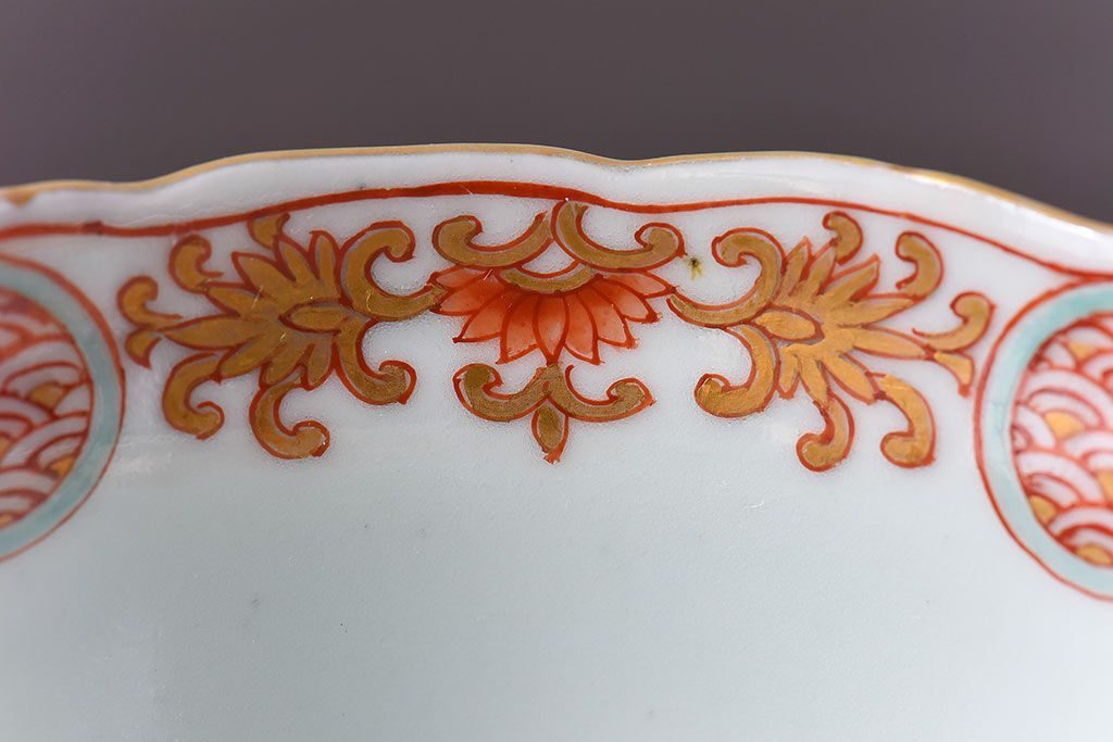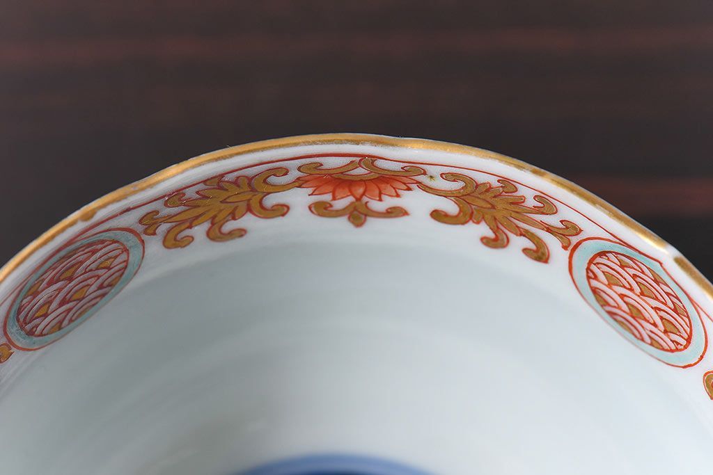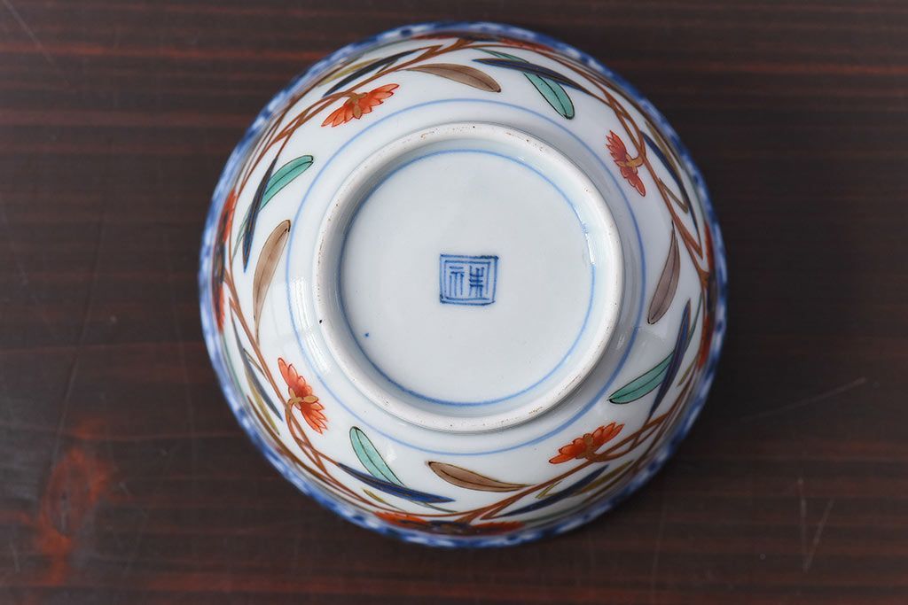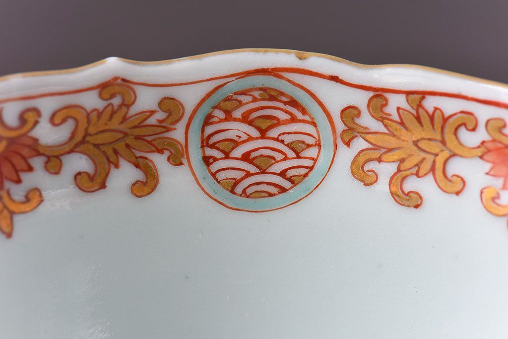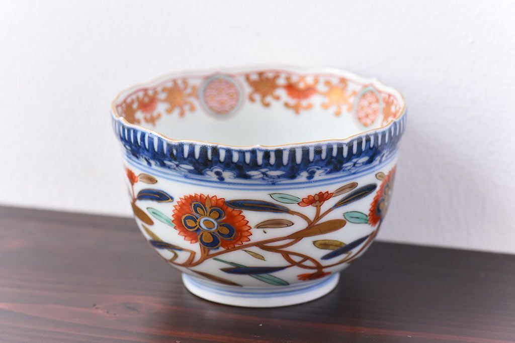 アンティーク雑貨 江戸期 華やかな色合いが目を引く色絵向付(和食器)(2)