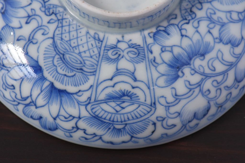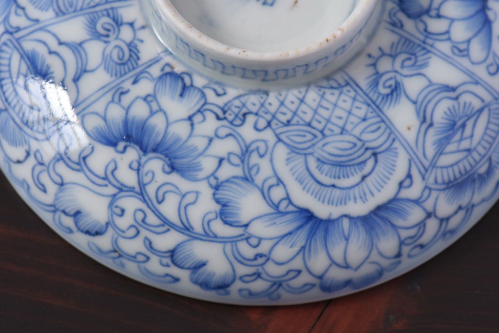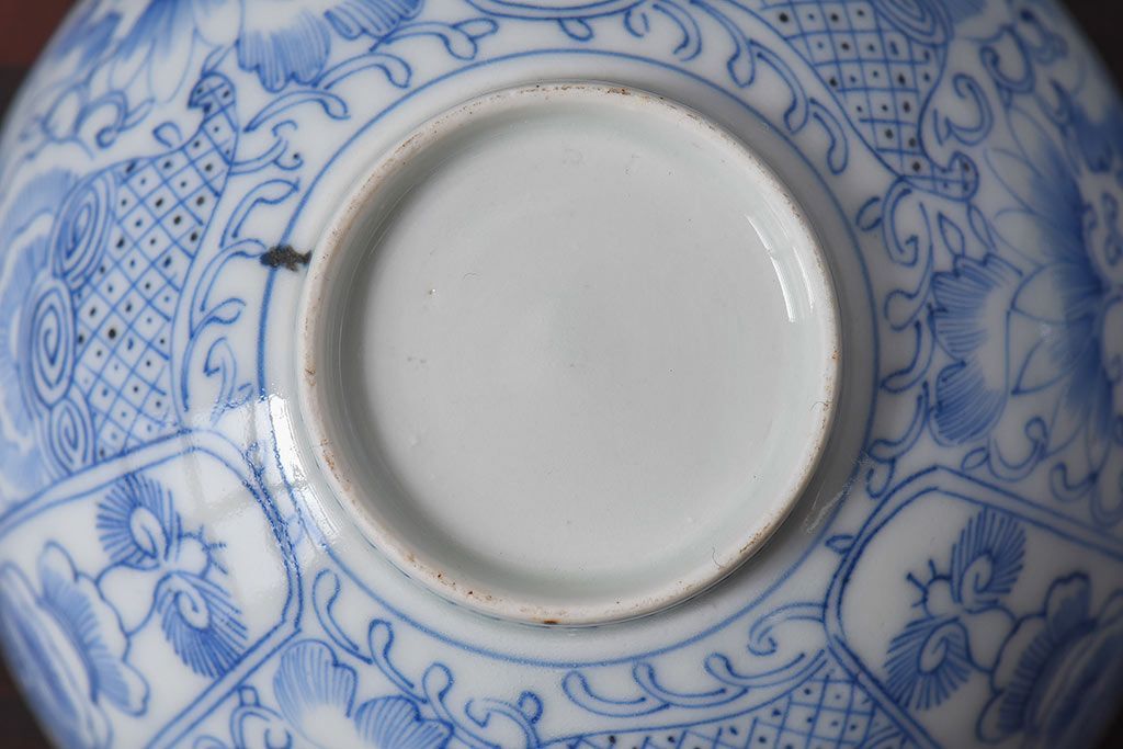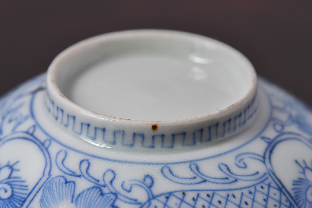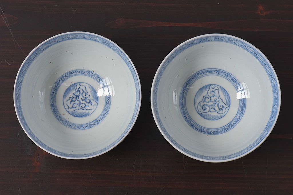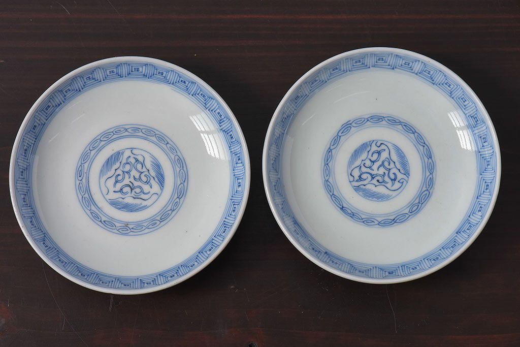 アンティーク雑貨 江戸時代後期 伊万里焼 線描染付 蓋茶碗2客セット(1)