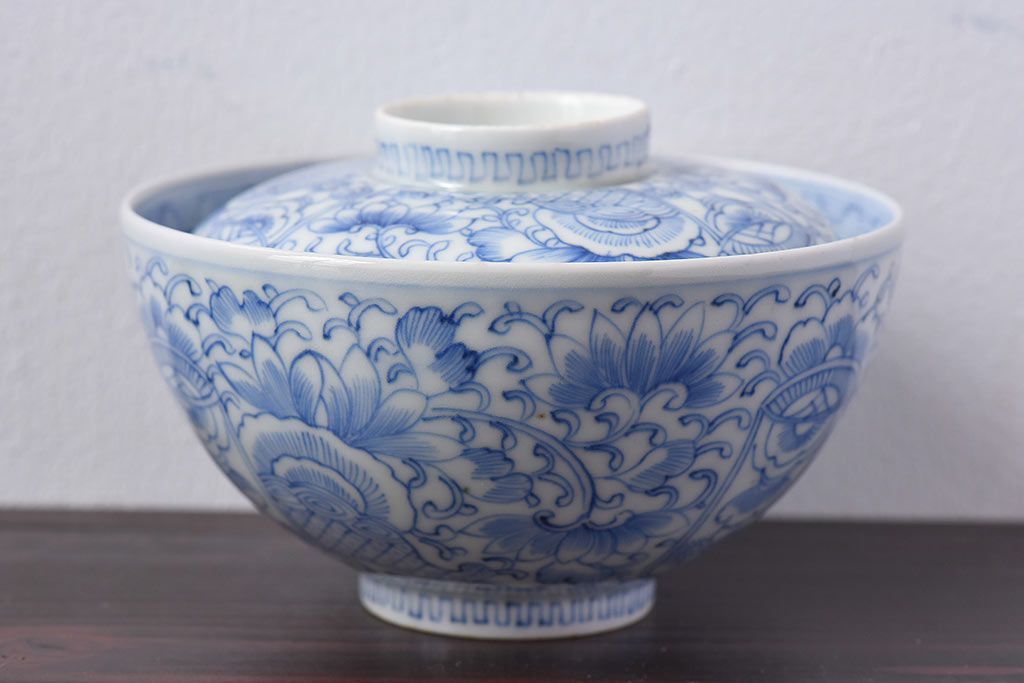 ラフジュ工房> 和食器・茶道具> お椀・茶碗 > アンティーク雑貨 江戸時代後期 伊万里焼 線描染付 蓋茶碗2客セット(1)