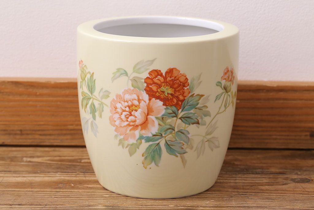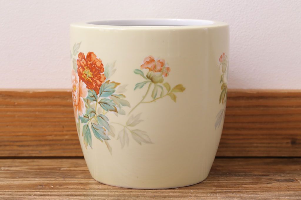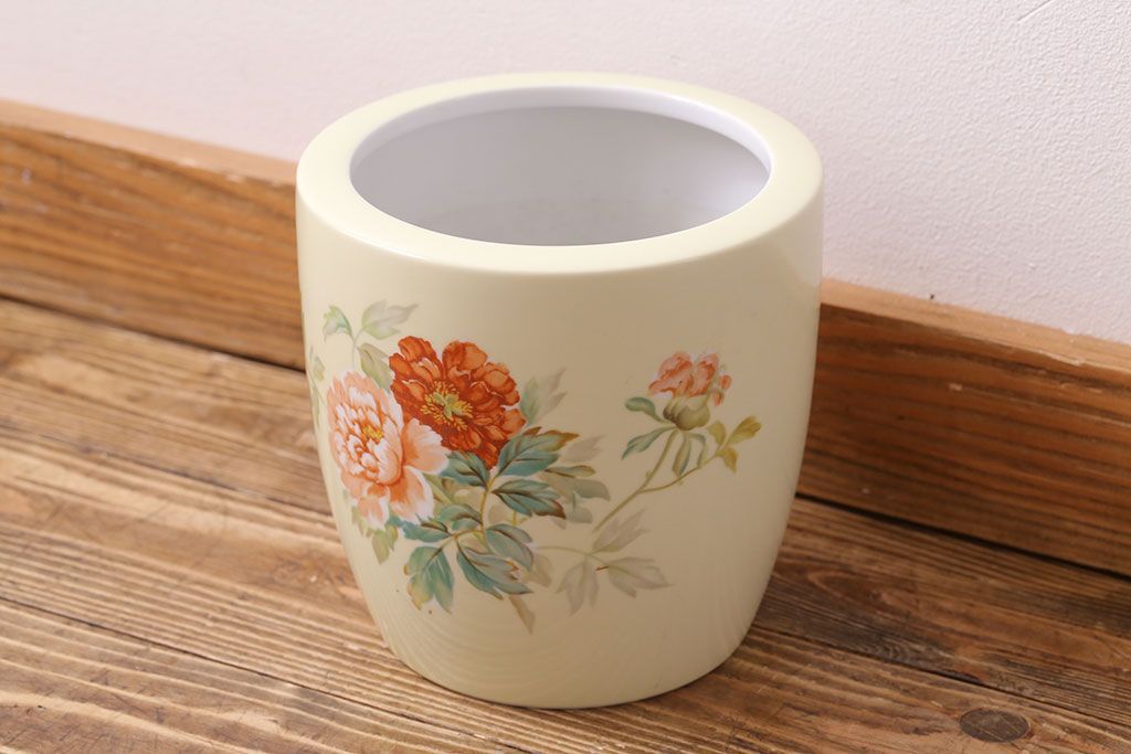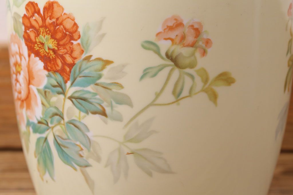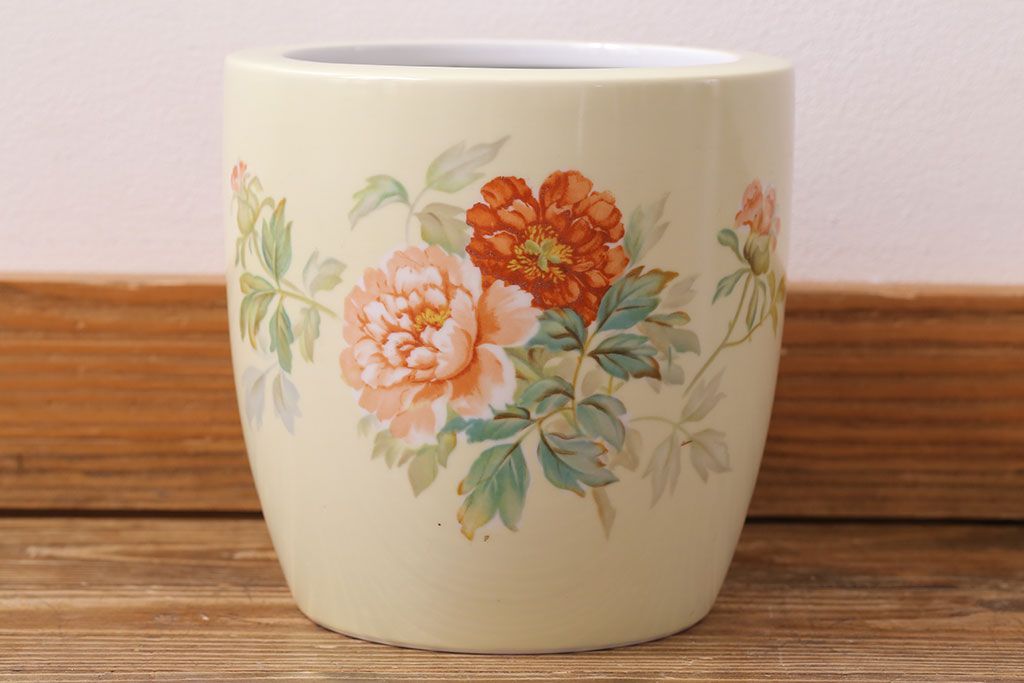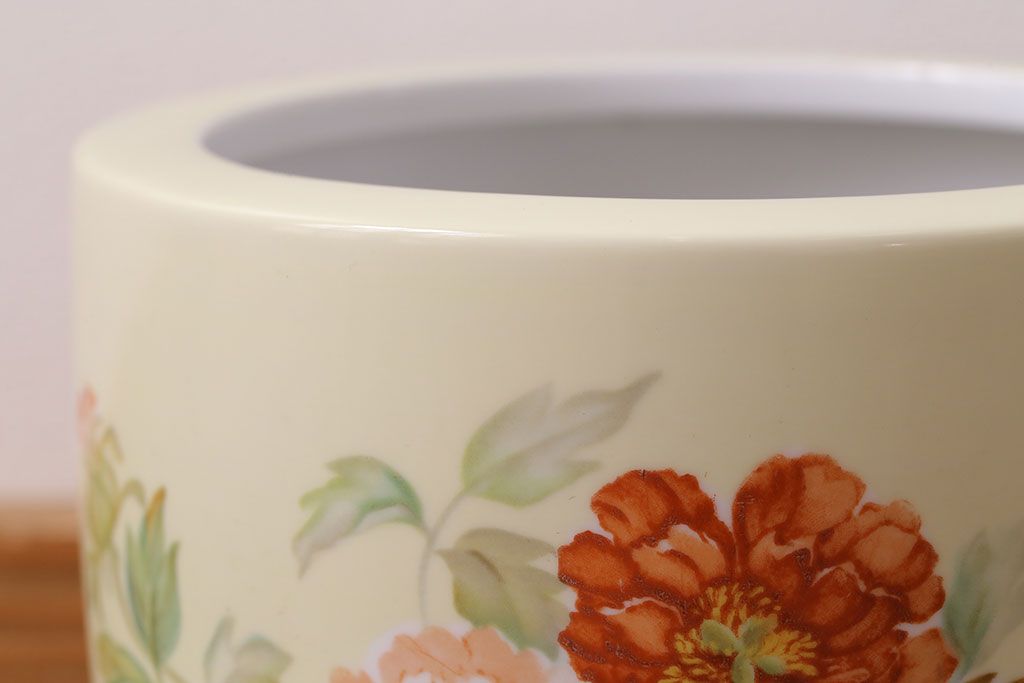 火鉢> 瀬戸火鉢 > アンティーク雑貨 ノリタケ・則武(日陶) 昭和初期 牡丹の図 小さな火鉢(手あぶり、鉢カバー)(1)