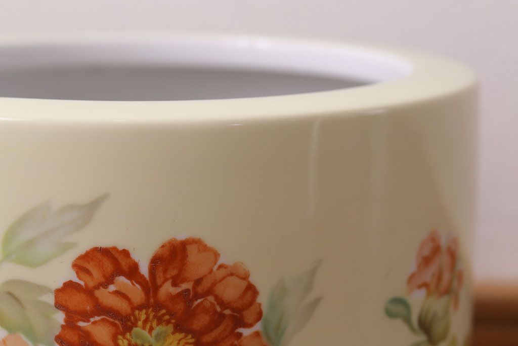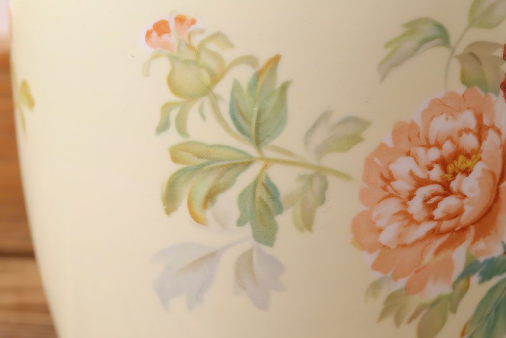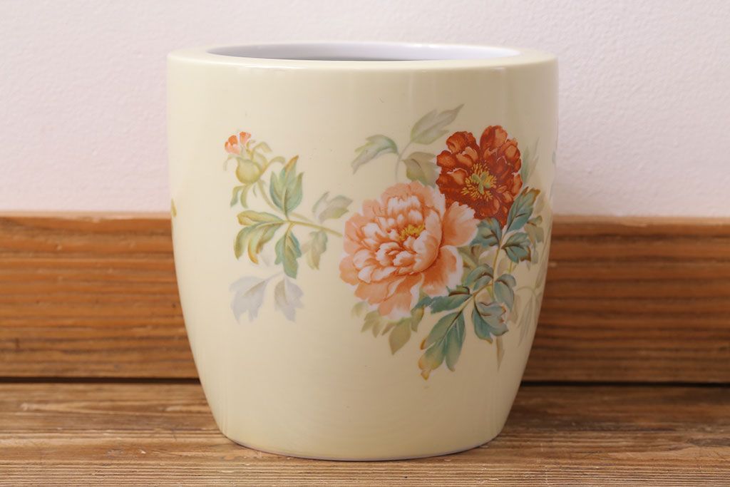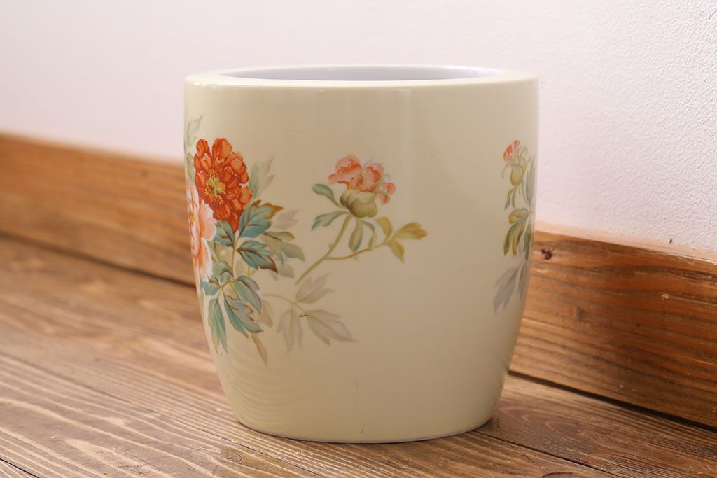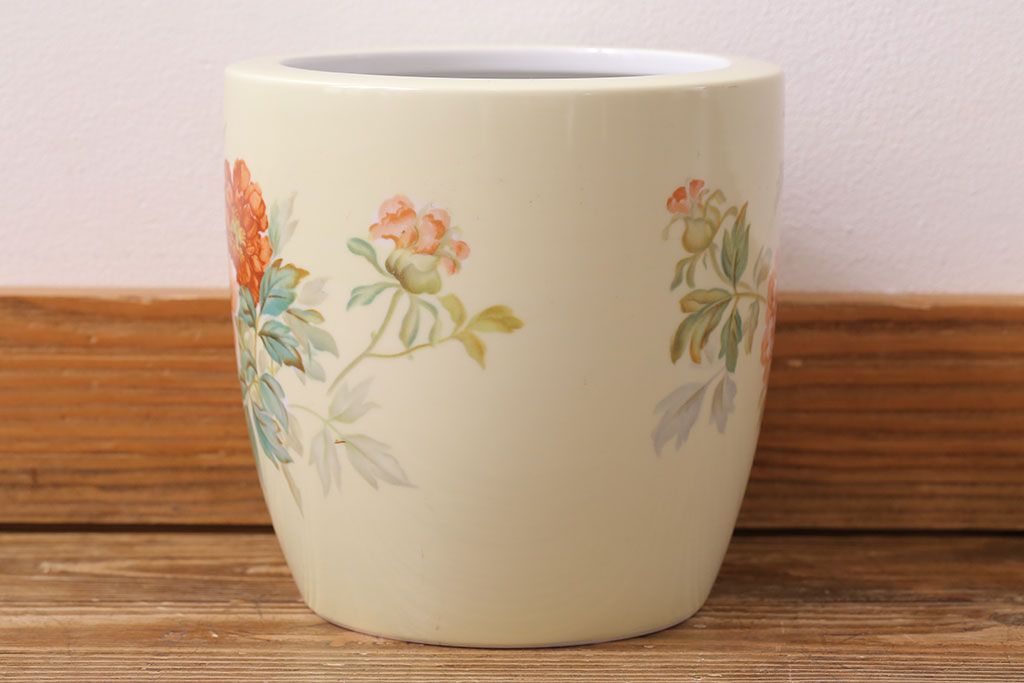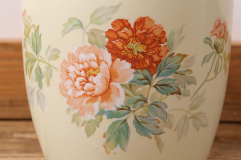 火鉢> 瀬戸火鉢 > アンティーク雑貨 ノリタケ・則武(日陶) 昭和初期 牡丹の図 小さな火鉢(手あぶり、鉢カバー)(1)