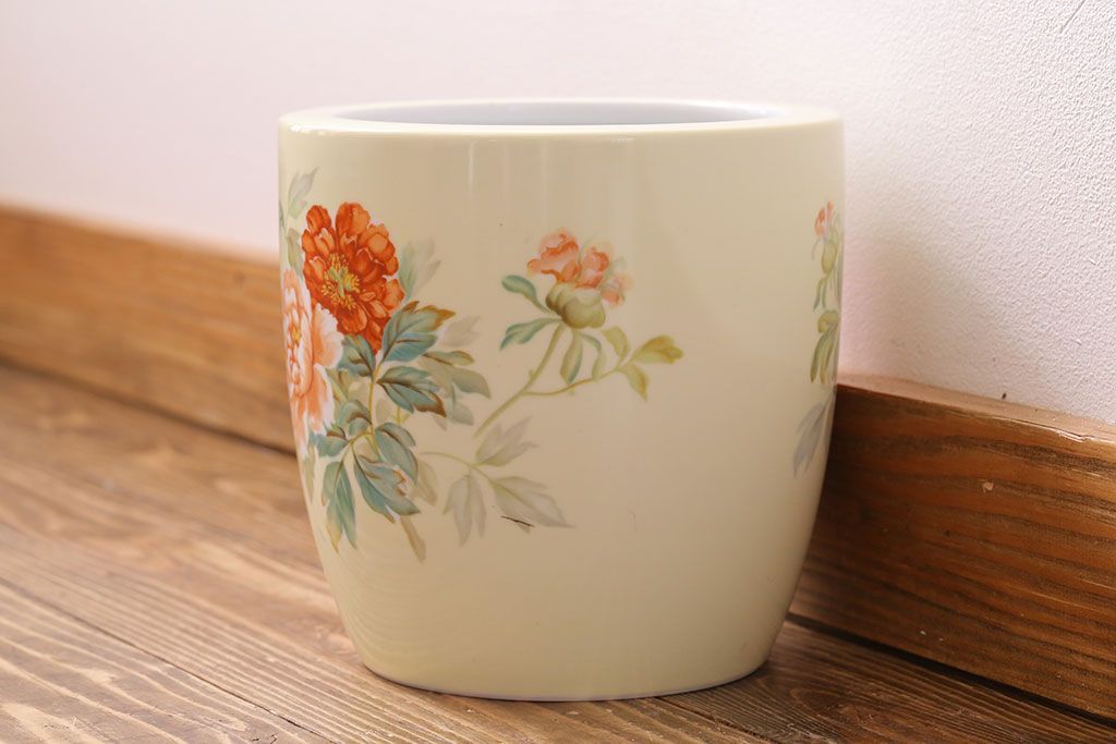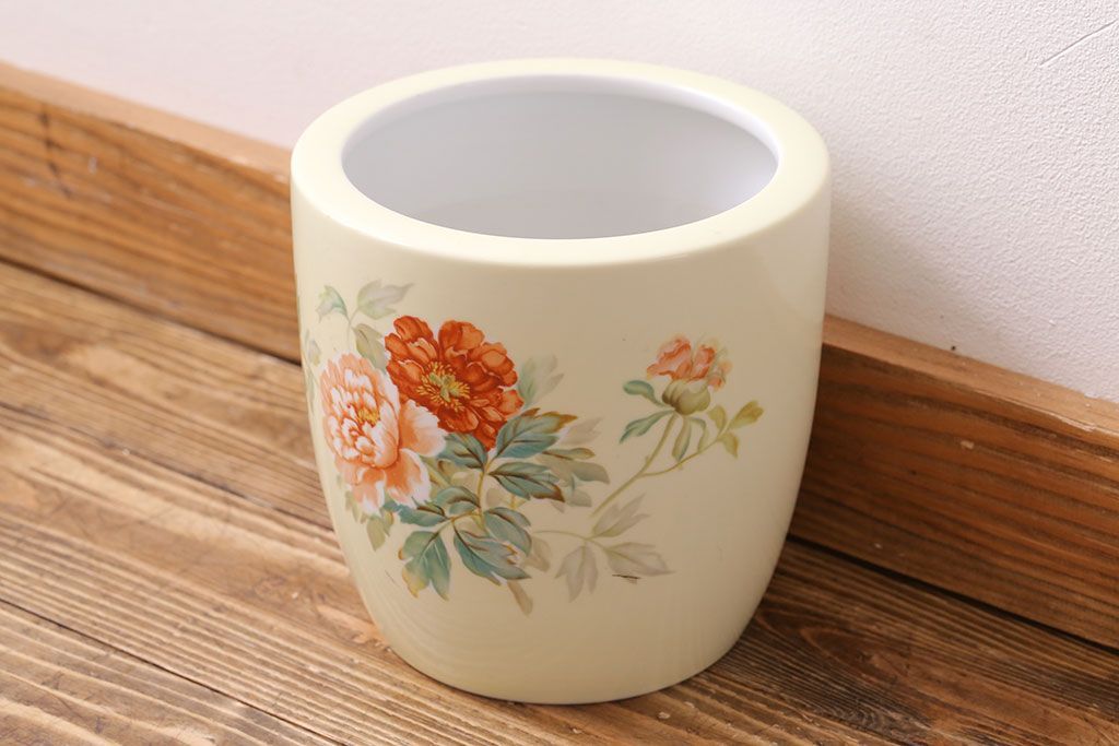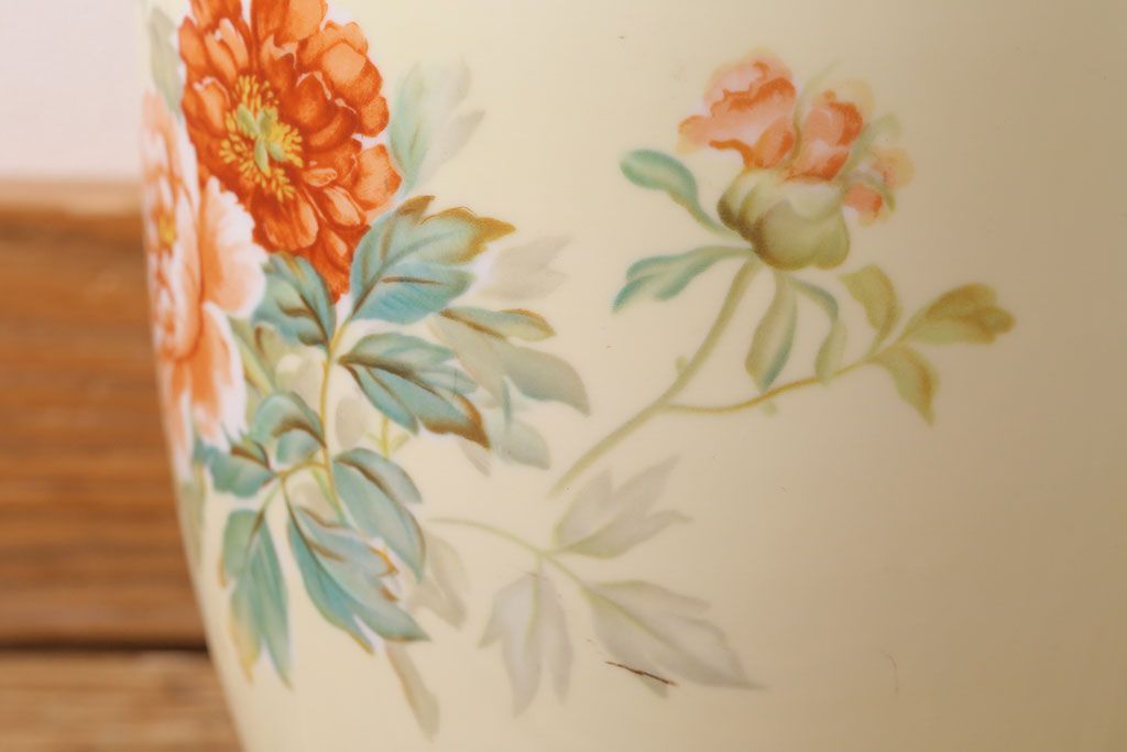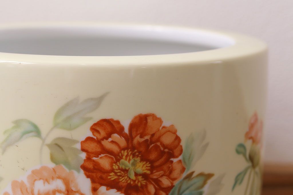 火鉢> 瀬戸火鉢 > アンティーク雑貨 ノリタケ・則武(日陶) 昭和初期 牡丹の図 小さな火鉢(手あぶり、鉢カバー)(2)
