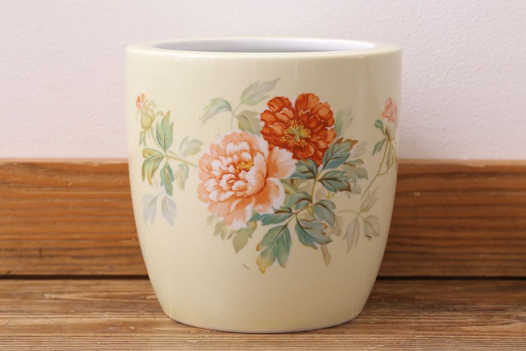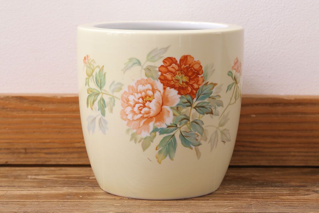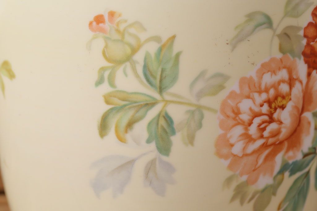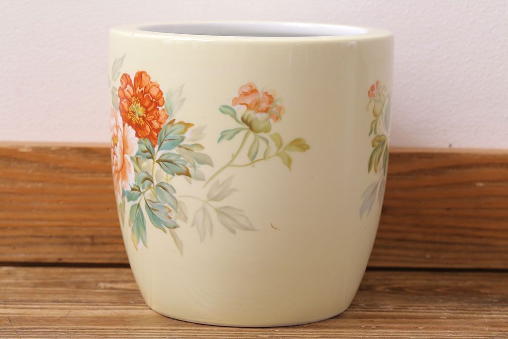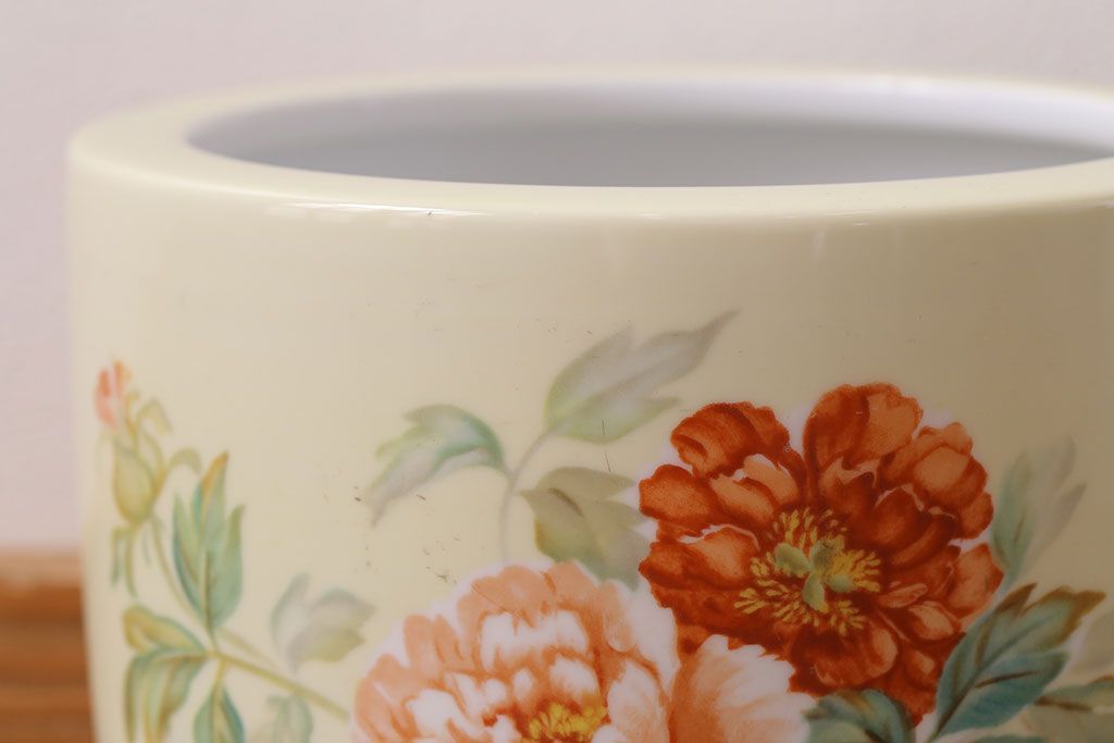 火鉢> 瀬戸火鉢 > アンティーク雑貨 ノリタケ・則武(日陶) 昭和初期 牡丹の図 小さな火鉢(手あぶり、鉢カバー)(2)