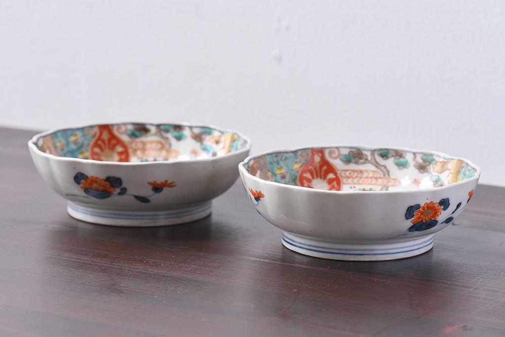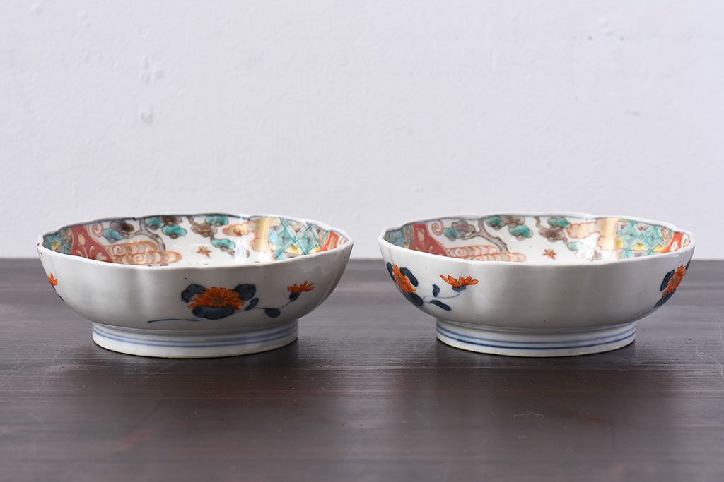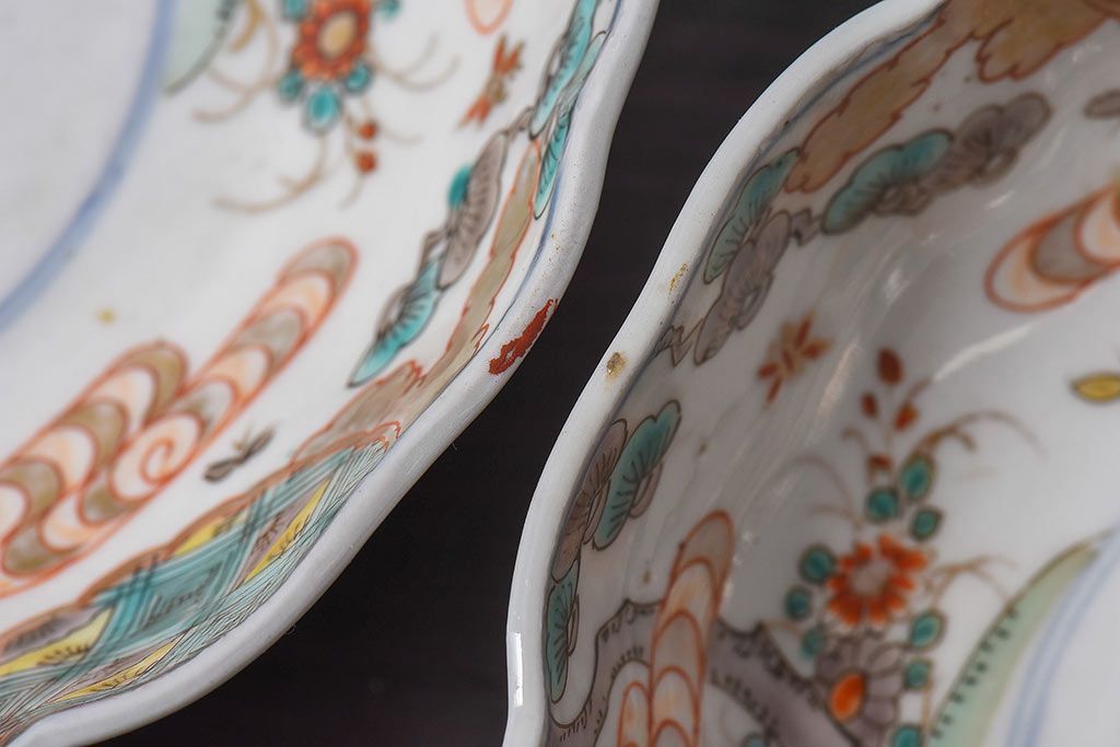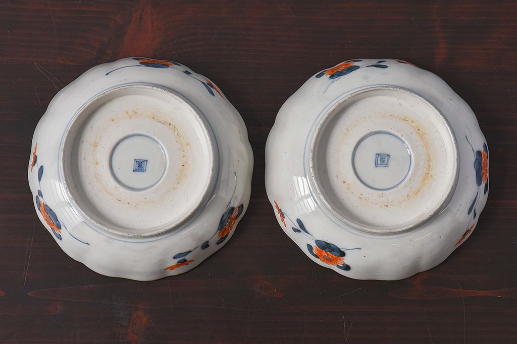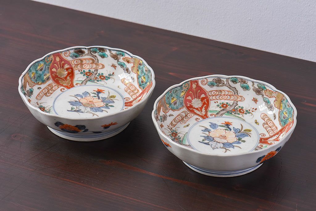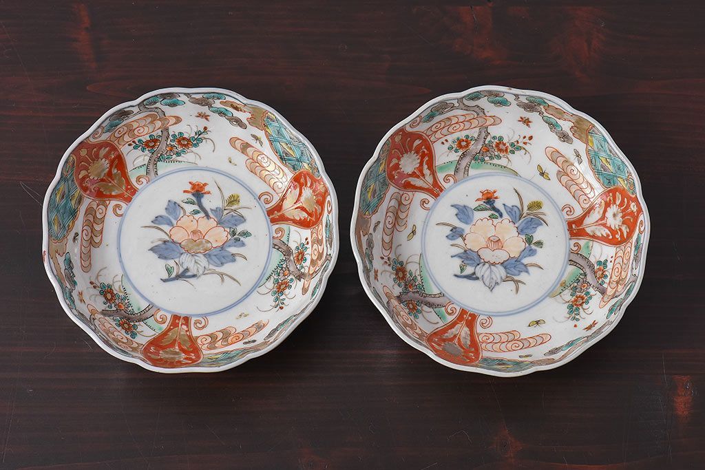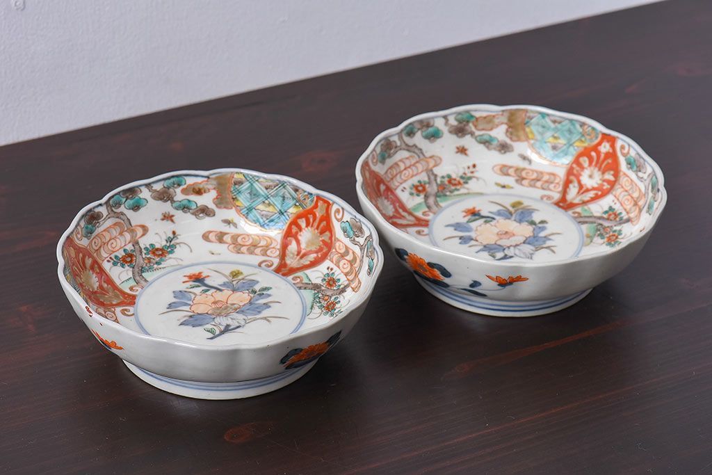 ラフジュ工房> 骨董・美術品> 骨董-陶磁器 > アンティーク雑貨 江戸期 古伊万里 牡丹と松のなます皿2枚セット(1)