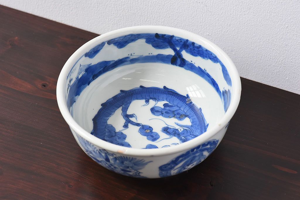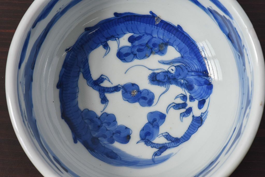 ラフジュ工房> 骨董・美術品> 骨董-陶磁器 > アンティーク雑貨 江戸期 古伊万里 染付 雲龍文 深鉢(深皿)(3)