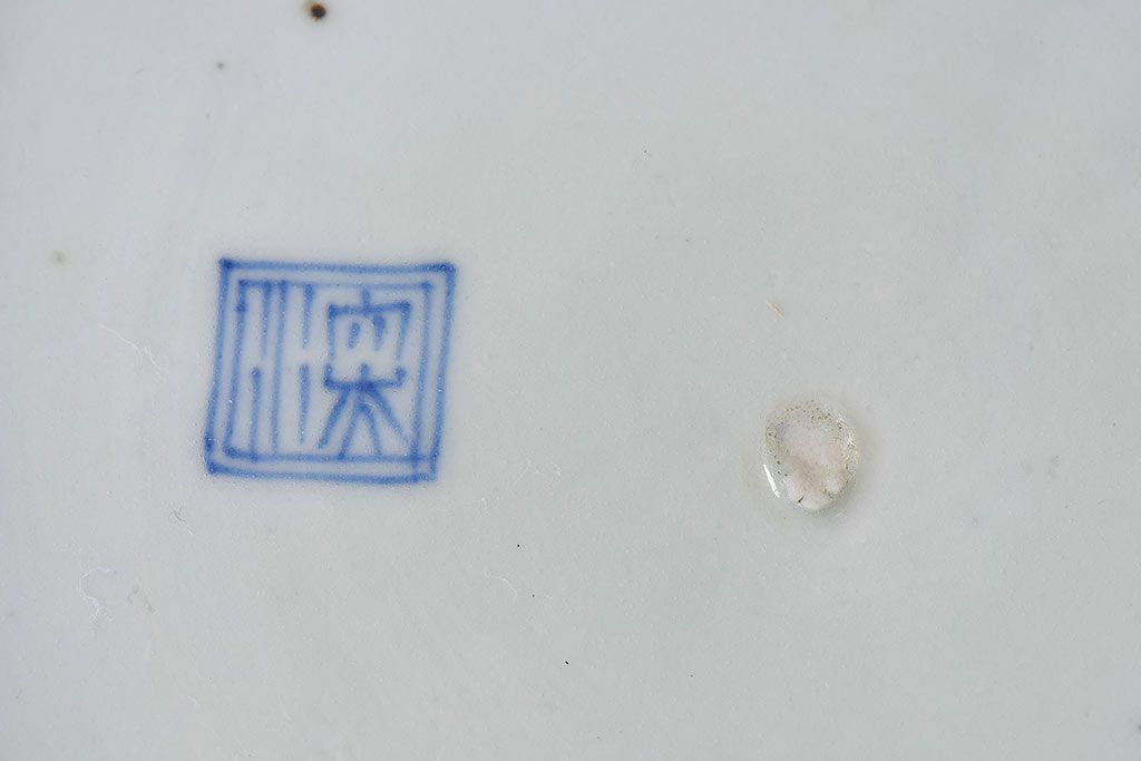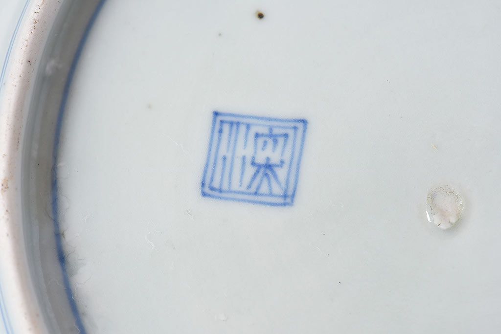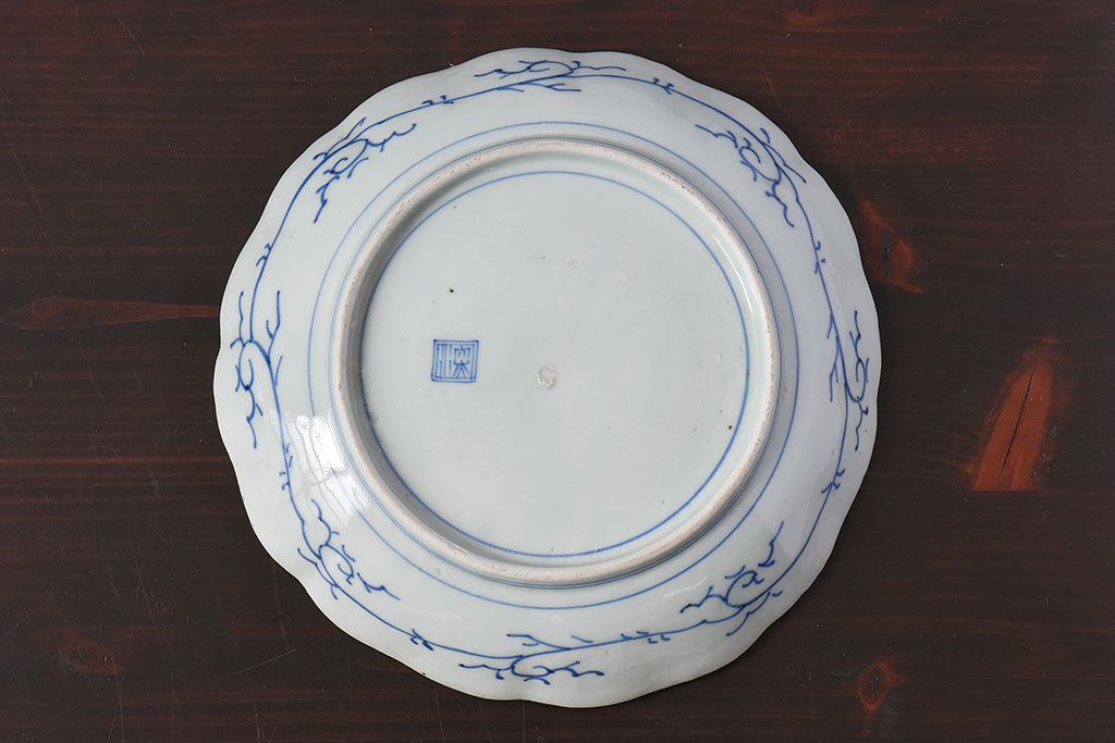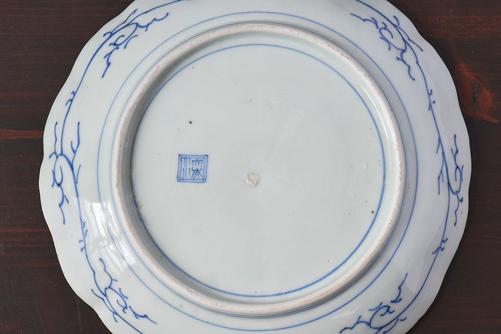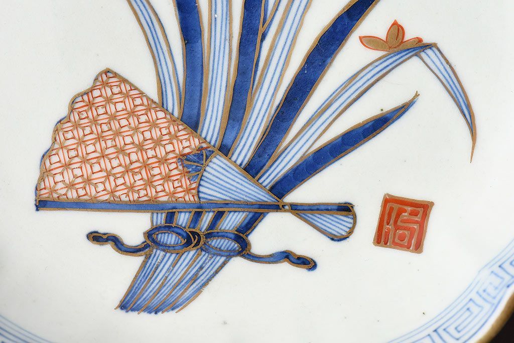 ラフジュ工房> 骨董・美術品> 骨董-陶磁器 > アンティーク雑貨 江戸期 古伊万里 水仙に扇面図 染付 七寸皿(中皿)2枚セット(2)