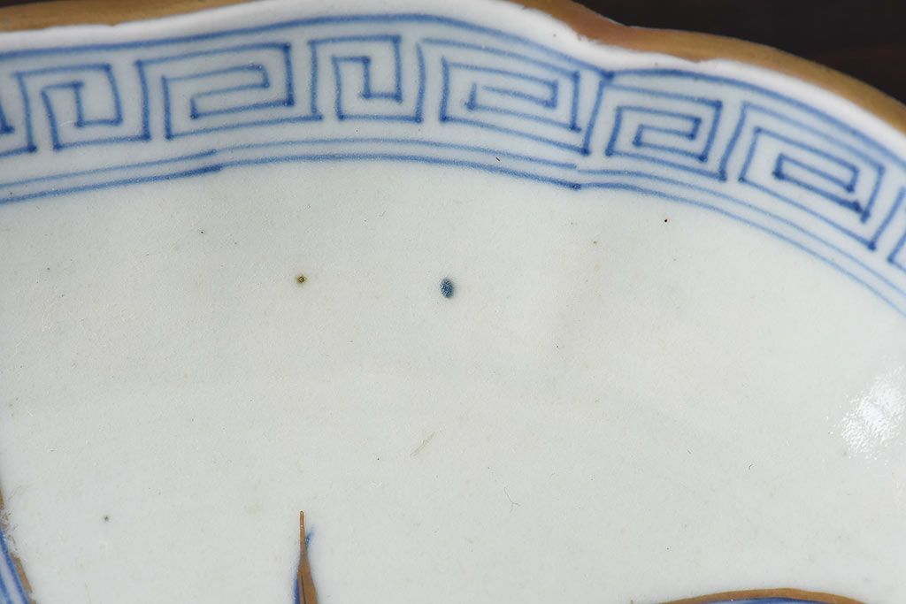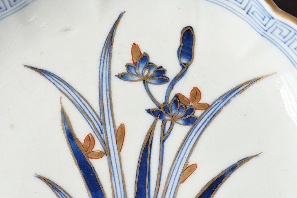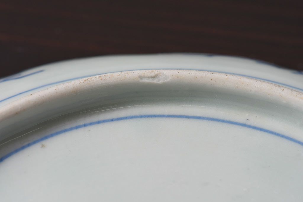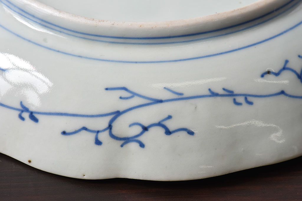 ラフジュ工房> 和食器・茶道具> 皿 > アンティーク雑貨 江戸期 古伊万里 水仙に扇面図 染付 七寸皿(中皿)2枚セット(2)