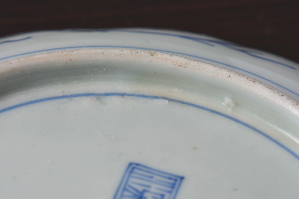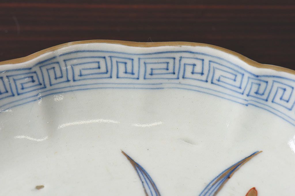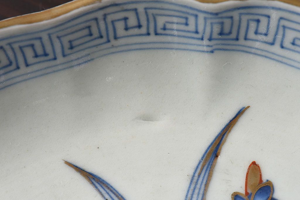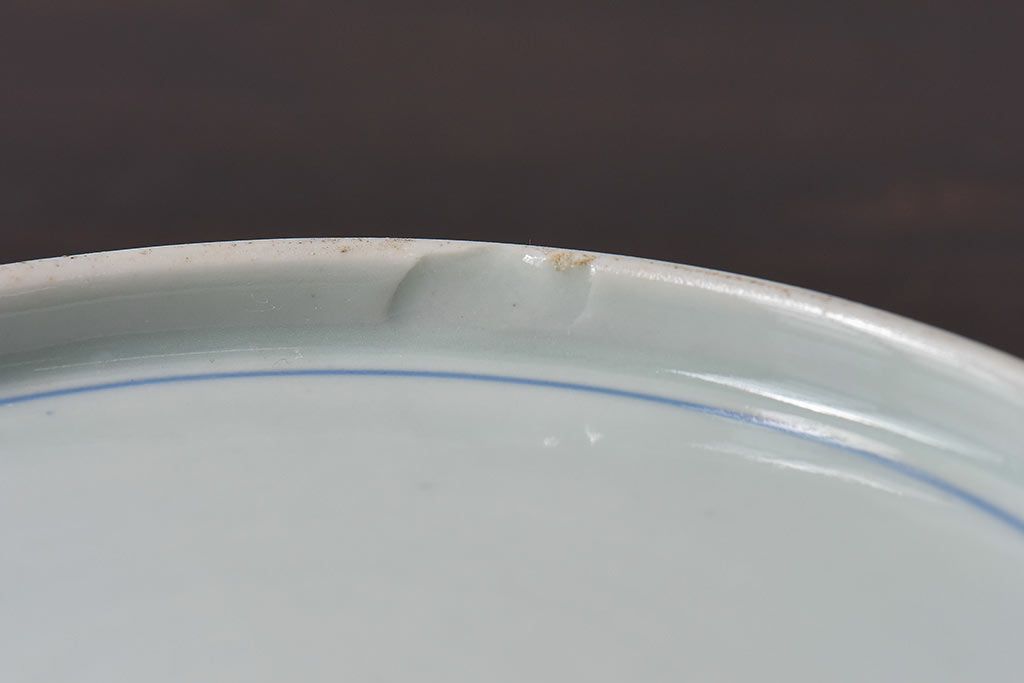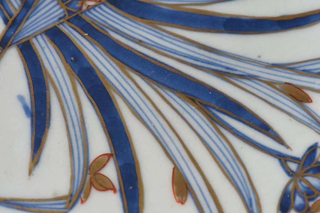 ラフジュ工房> 和食器・茶道具> 皿 > アンティーク雑貨 江戸期 古伊万里 水仙に扇面図 染付 七寸皿(中皿)2枚セット(2)