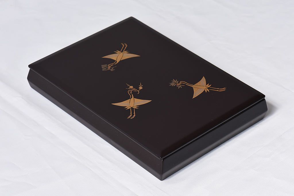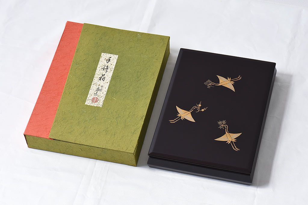 アンティーク雑貨 未使用 平安象彦 松喰鶴蒔絵手許箱(漆器)