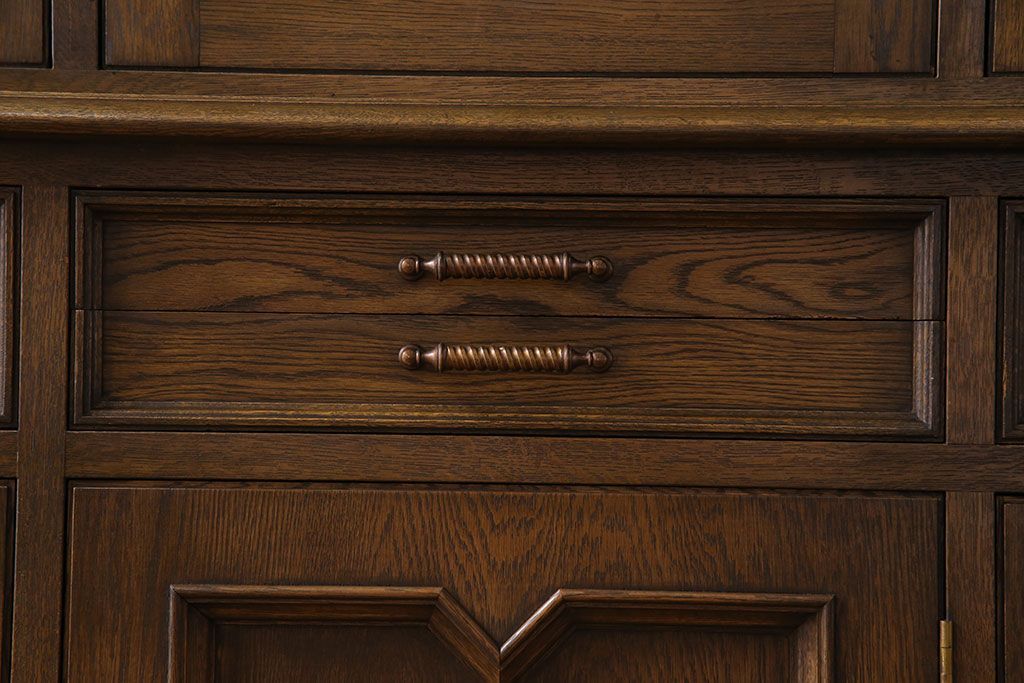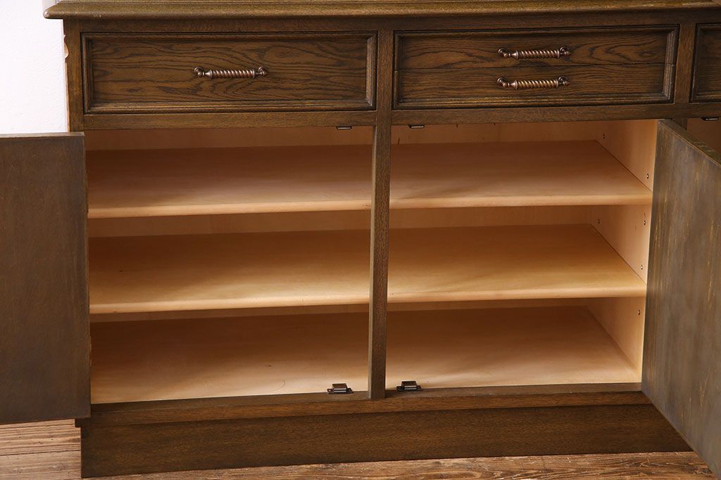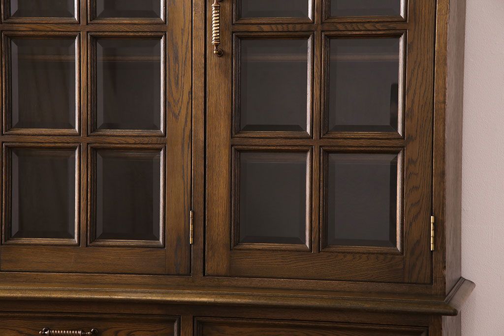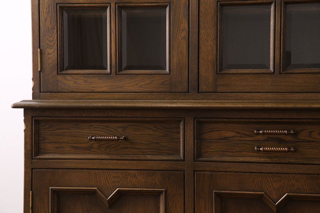 まるでイギリスアンティーク家具のような優雅な佇まいが魅力的な、神戸の家具ブランド、永田良介商店の食器棚です。洋風のデザインを取り入れつつ、日本人の生活・体型に合うように仕上げられています。棚板、引き出しの仕切りとも取り外しできるので、用途に合わせた収納ができます。末永く使える一生ものの家具として、おすすめのお品です。