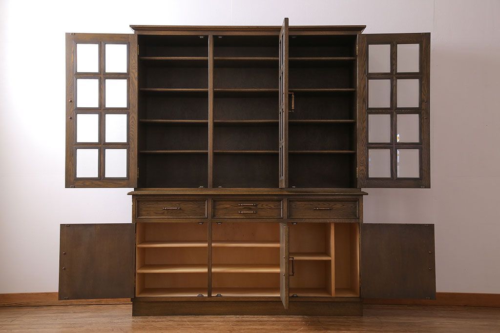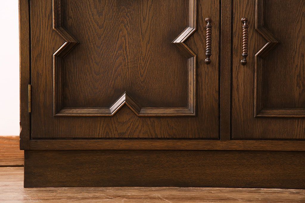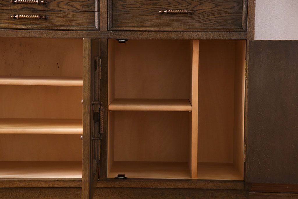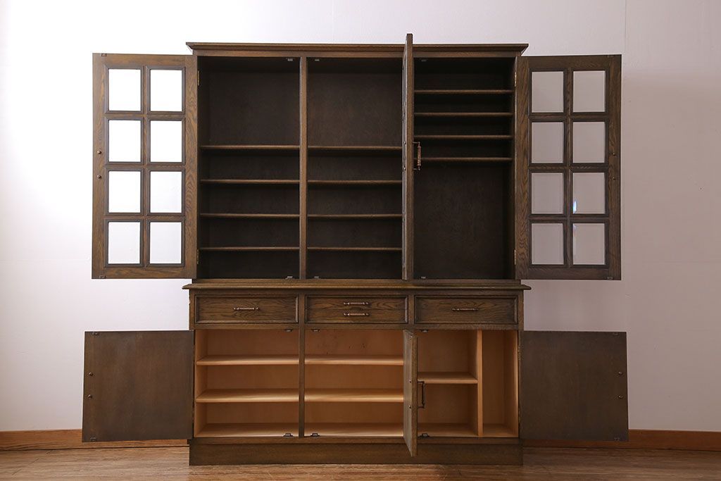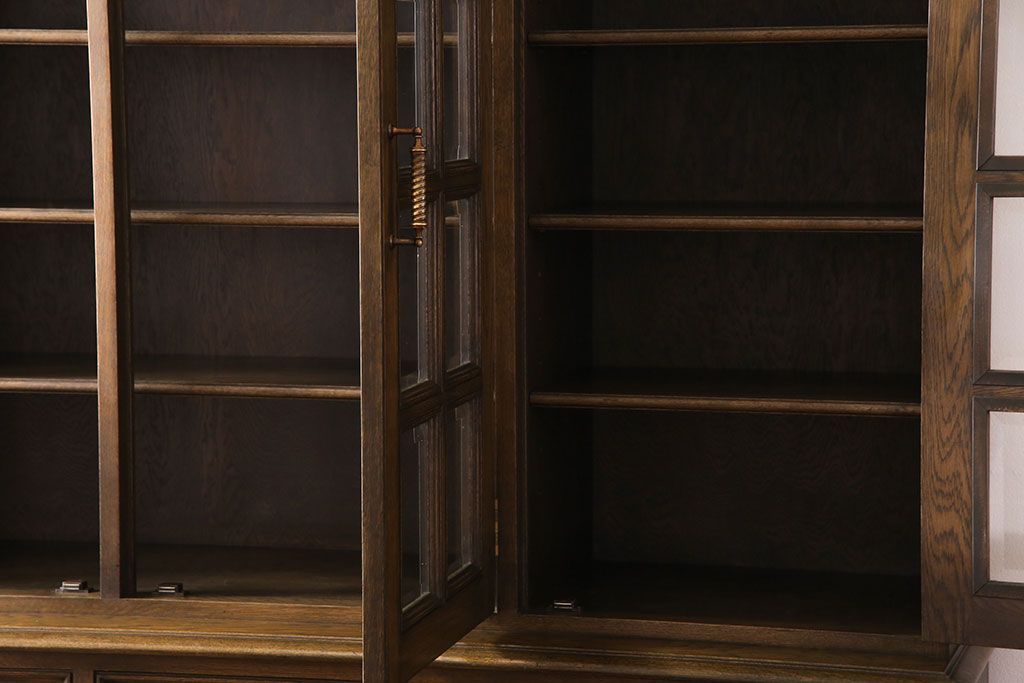 まるでイギリスアンティーク家具のような優雅な佇まいが魅力的な、神戸の家具ブランド、永田良介商店の食器棚です。洋風のデザインを取り入れつつ、日本人の生活・体型に合うように仕上げられています。棚板、引き出しの仕切りとも取り外しできるので、用途に合わせた収納ができます。末永く使える一生ものの家具として、おすすめのお品です。