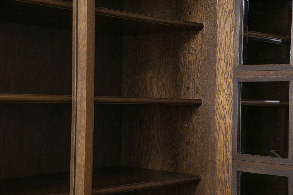 - ガラスの両開き戸と片開き戸は、一枚ずつの幅が狭いので使っている最中も無駄なスペースを取りません。扉の中は棚板を取り外せるので、深さのある器もしまえて便利です。コレクションを収納したい時にも対応できますね。