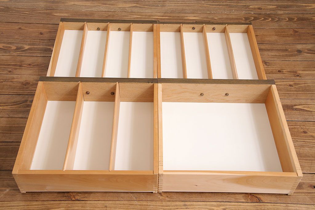 引き出し内の仕切りも取り外せますので、幅の広いものでもしまえますよ。