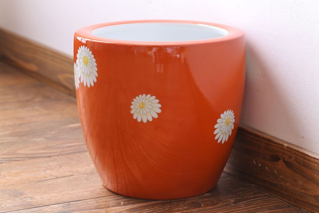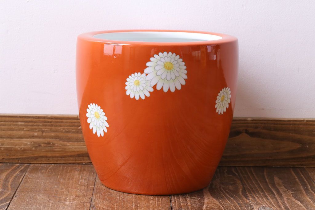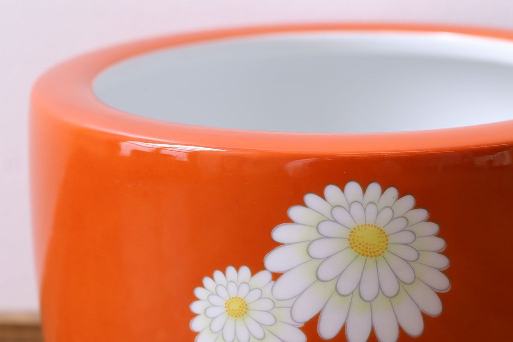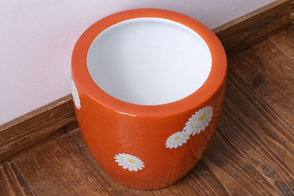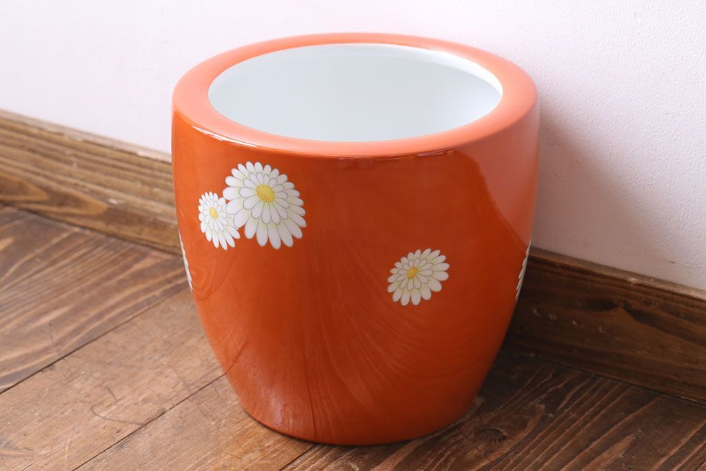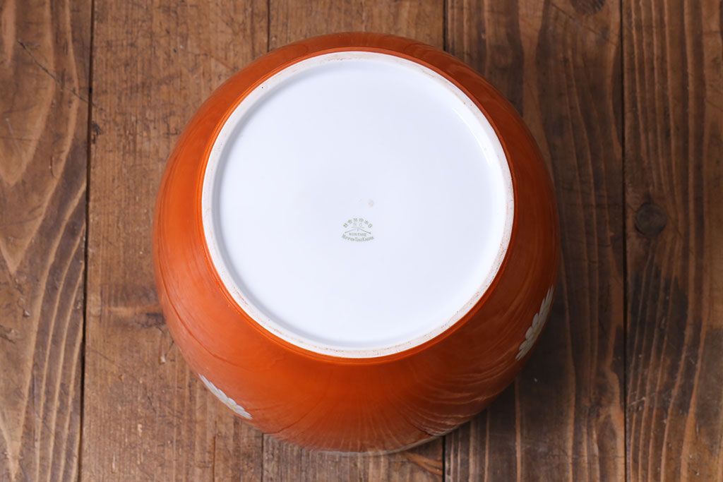 火鉢> 瀬戸火鉢 > アンティーク雑貨 オールドノリタケ(則武・日陶) ヤジロベー印 朱色地白菊文 火鉢(2)