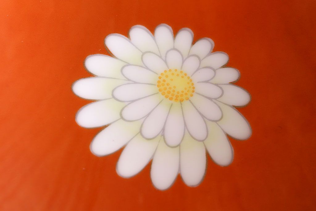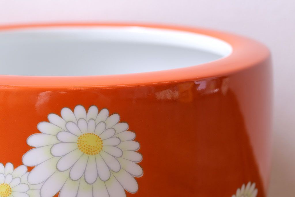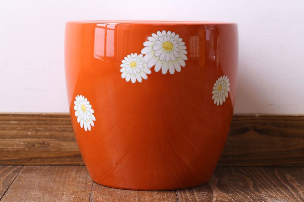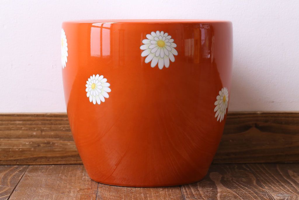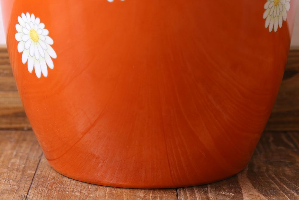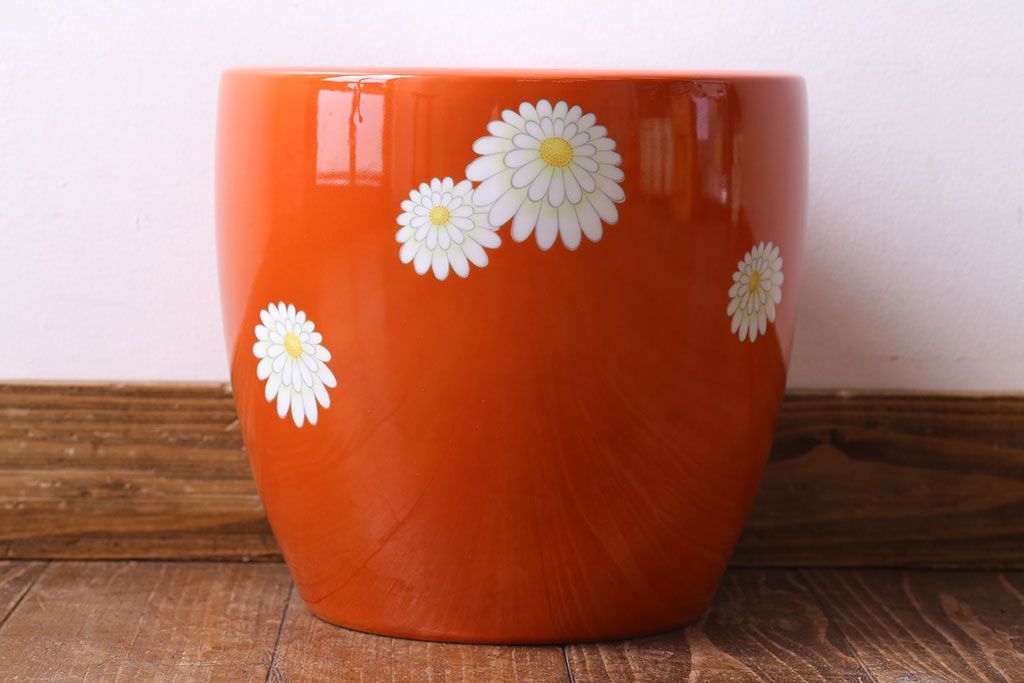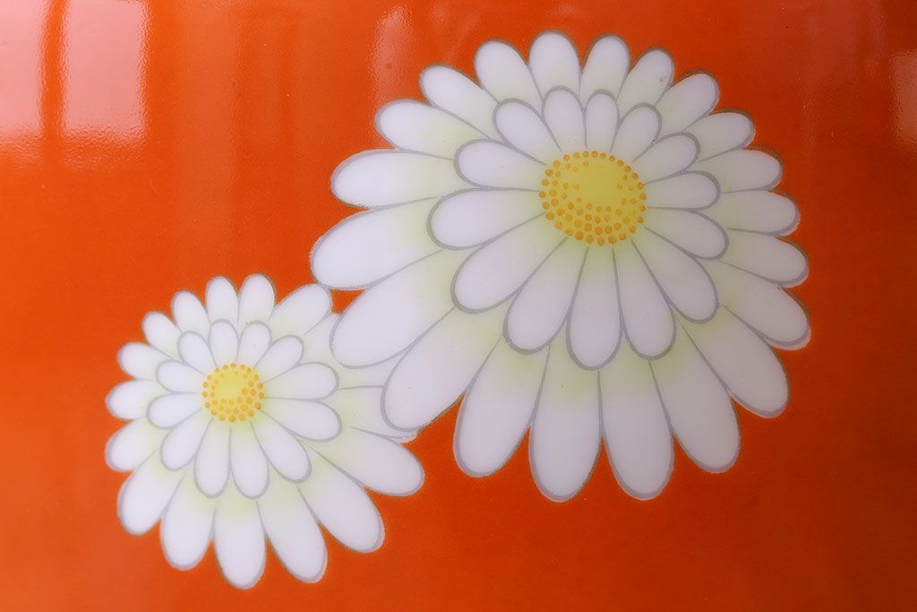 火鉢> 瀬戸火鉢 > アンティーク雑貨 オールドノリタケ(則武・日陶) ヤジロベー印 朱色地白菊文 火鉢(2)