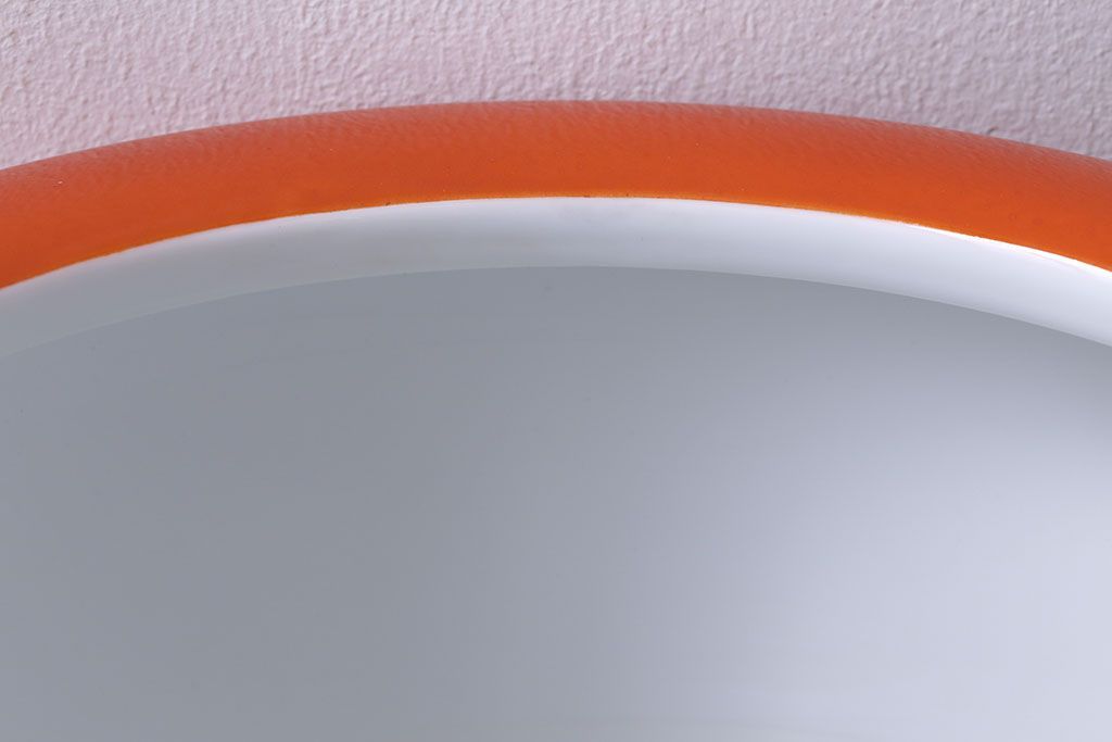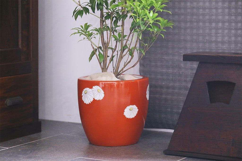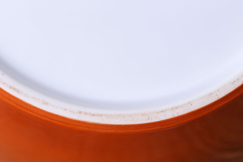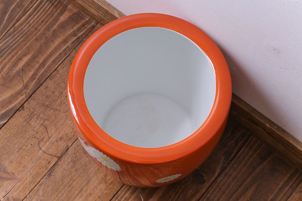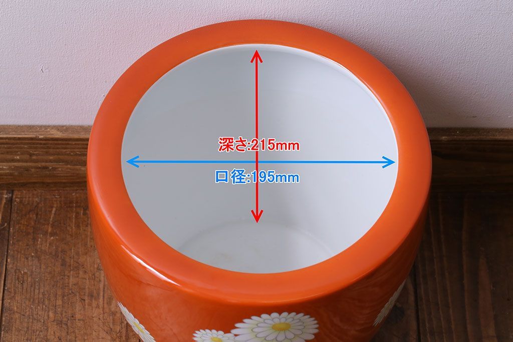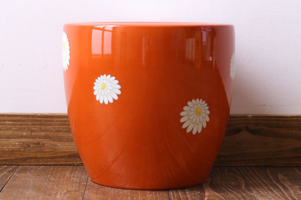 火鉢> 瀬戸火鉢 > アンティーク雑貨 オールドノリタケ(則武・日陶) ヤジロベー印 朱色地白菊文 火鉢(2)