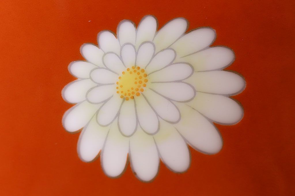 アンティーク雑貨 オールドノリタケ(則武・日陶) ヤジロベー印 朱色地白菊文 火鉢(2)