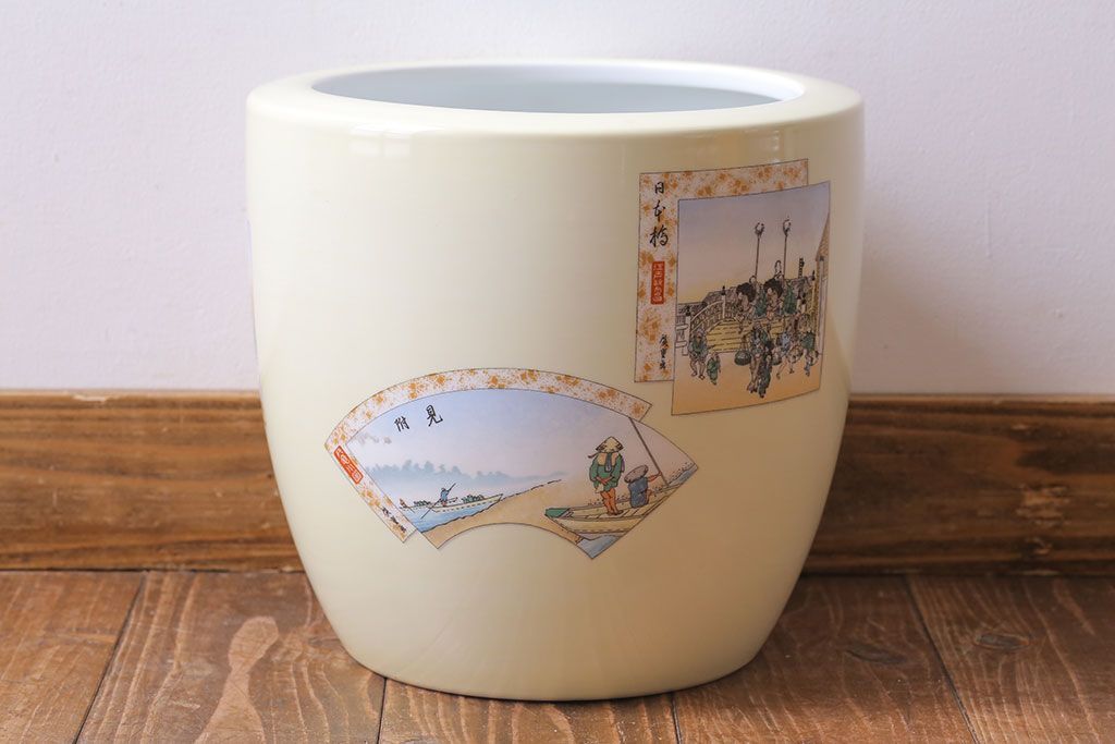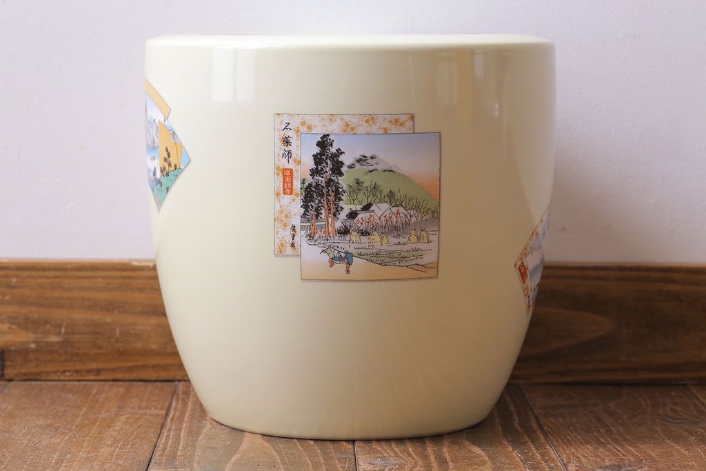 火鉢> 瀬戸火鉢 > アンティーク雑貨 ノリタケ・則武(日陶) 「東海道五十三次」和の雰囲気漂う火鉢(手あぶり、鉢カバー、傘立て)(3)