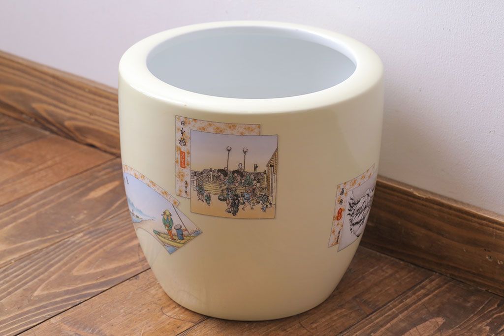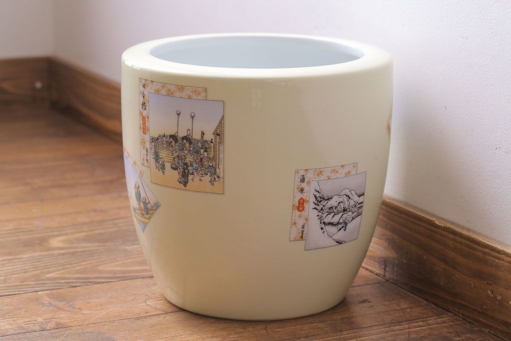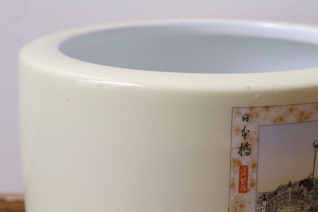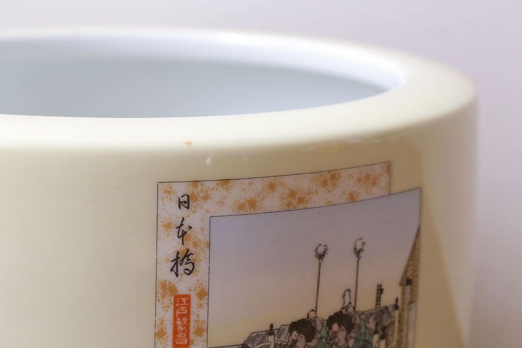 骨董・美術品> 骨董-陶磁器 > 和製アンティーク オールドノリタケ 日陶(則武) 東海道五十三次 江戸の風景が楽しめる火鉢(瀬戸火鉢、Noritake、noritake、NORITAKE、鉢カバー、傘立て、ディスプレイ)(1)(R-028179)